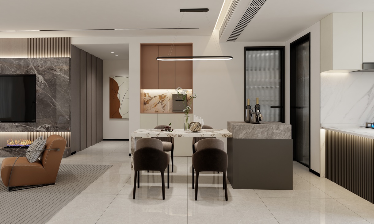 每個(gè)空間至少2張效果圖+1張全案全景圖展示,方案描述完整,所有空間需命名。