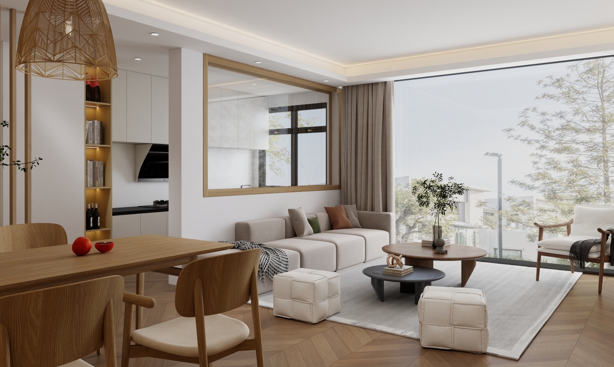 每個空間至少2張效果圖+1張全案全景圖展示,方案描述完整,所有空間需命名。