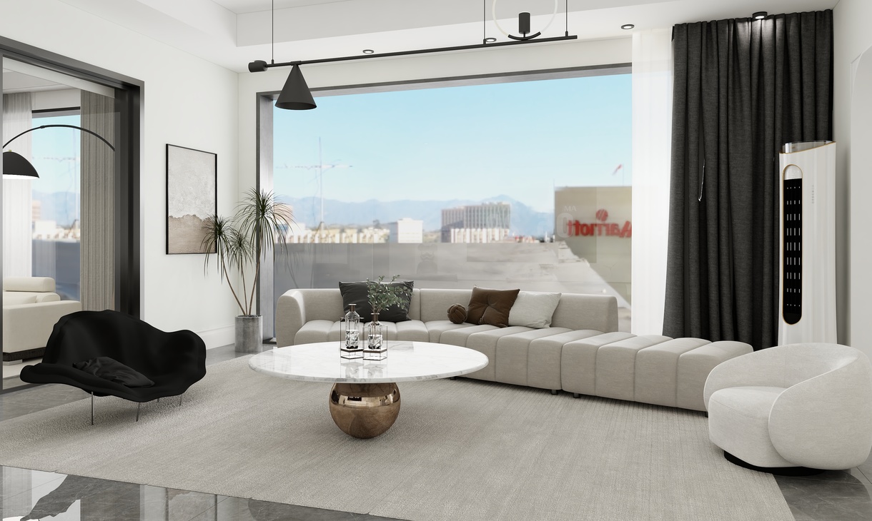 我觀察到一種對于生活美學與室內裝飾設計的深入探討。作品圍繞現代家居風格展開,聚焦于兩種不同材質的沙發——皮沙發和布沙發,在輕歐式簡約風格的背景下,呈現出它們各自的魅力與特點。展現了黑色皮沙發和布沙發在簡約裝飾環境中的擺放效果。鏡頭緩緩推進,細節之處無不透露出設計師的匠心獨運。皮沙發以其光滑的表面、硬朗的線條和深邃的黑色調,彰顯出高貴與穩重的氣質;而布沙發則以其柔和的質感、溫暖的色調和舒適的坐感,營造出一種輕松愉悅的氛圍。