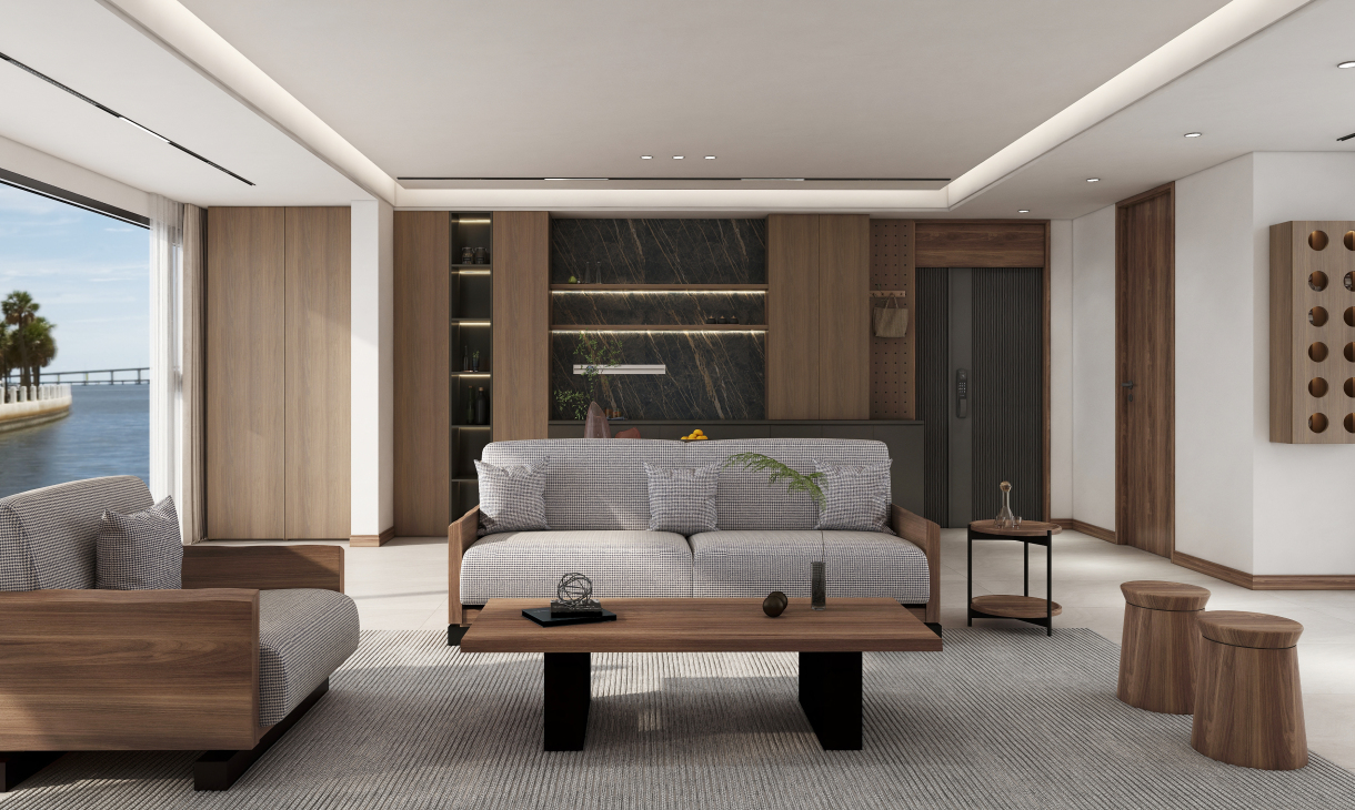 ??胡桃木自然的紋理,低調(diào)又質(zhì)樸,沁出溫潤(rùn)的質(zhì)感。 ??經(jīng)典的黑色調(diào)和獨(dú)特的設(shè)計(jì),賦予空間一種神秘且現(xiàn)代的氣息。不僅能夠?yàn)榭臻g增添視覺(jué)上的深度,還能與胡桃色形成強(qiáng)烈的對(duì)比,提升了整個(gè)空間的質(zhì)感,既能展現(xiàn)出現(xiàn)代簡(jiǎn)約之美,又能不失其應(yīng)有的穩(wěn)重與舒適度。