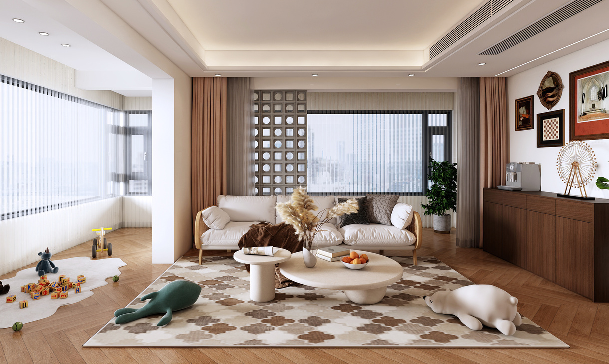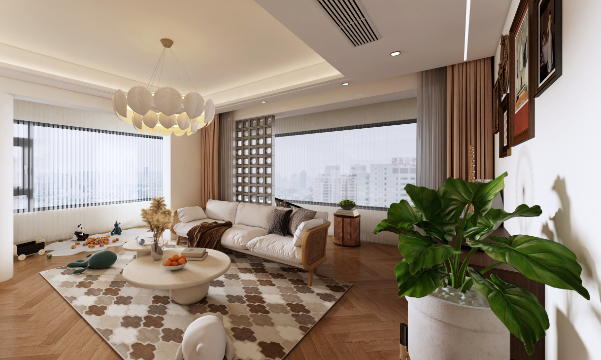 每個空間至少2張效果圖+1張全案全景圖展示,方案描述完整,所有空間需命名。