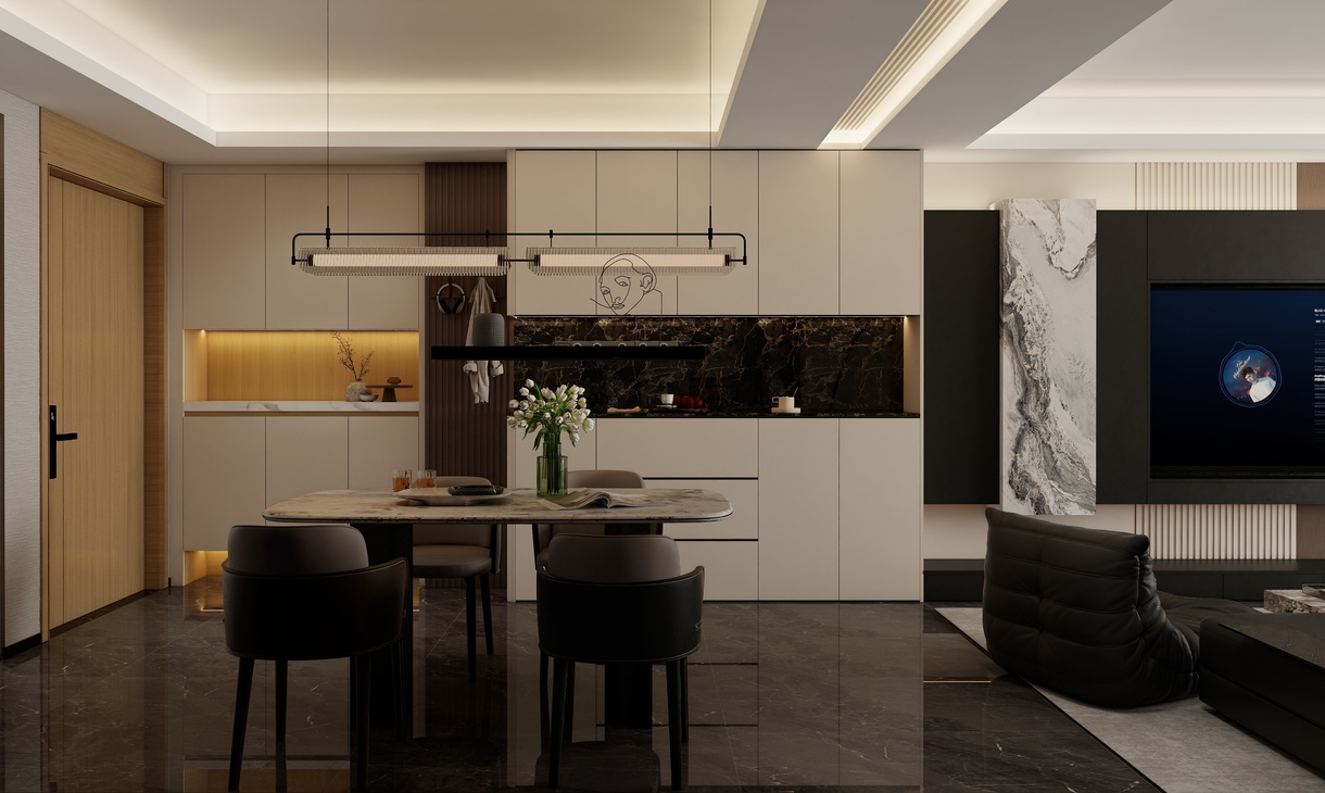 每個空間至少2張效果圖+1張全案全景圖展示,方案描述完整,所有空間需命名。