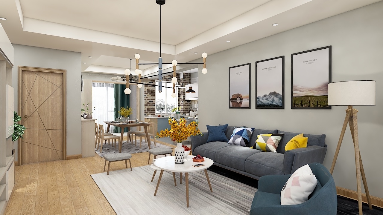 每個空間至少2張效果圖+1張全案全景圖展示,方案描述完整,所有空間需命名。