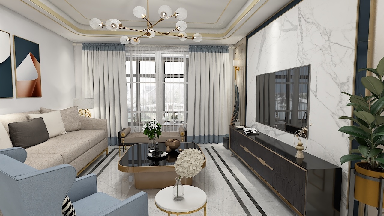 每個空間至少2張效果圖+1張全案全景圖展示,方案描述完整,所有空間需命名。