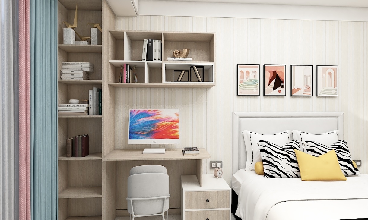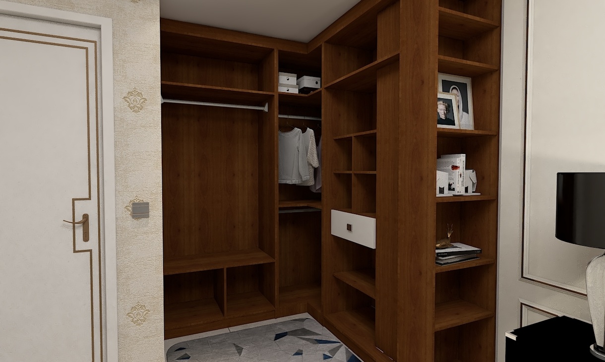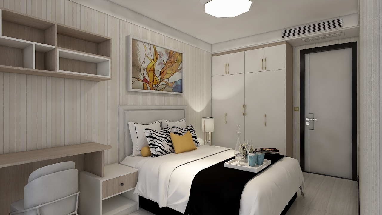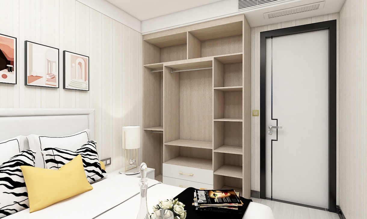 業主是教師喜歡簡單的東西,最好現代中融合一點中式元素,1個女兒臥室做的清新簡潔,書房新中式,主臥改造衣帽間,用梨木2號色做柜體整體感覺溫馨淡雅,墻面軟裝搭配也一素色為主
