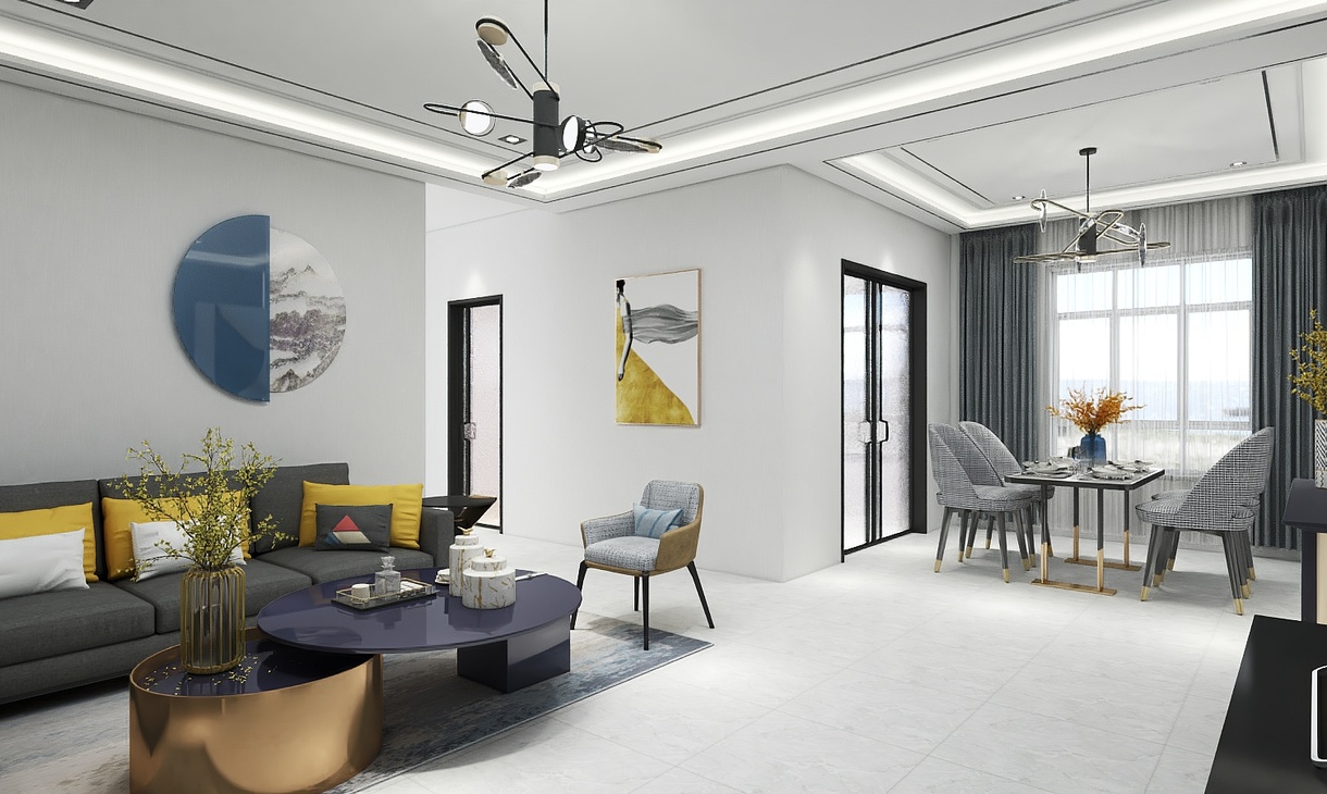 每個空間至少2張效果圖+1張全案全景圖展示,方案描述完整,所有空間需命名。