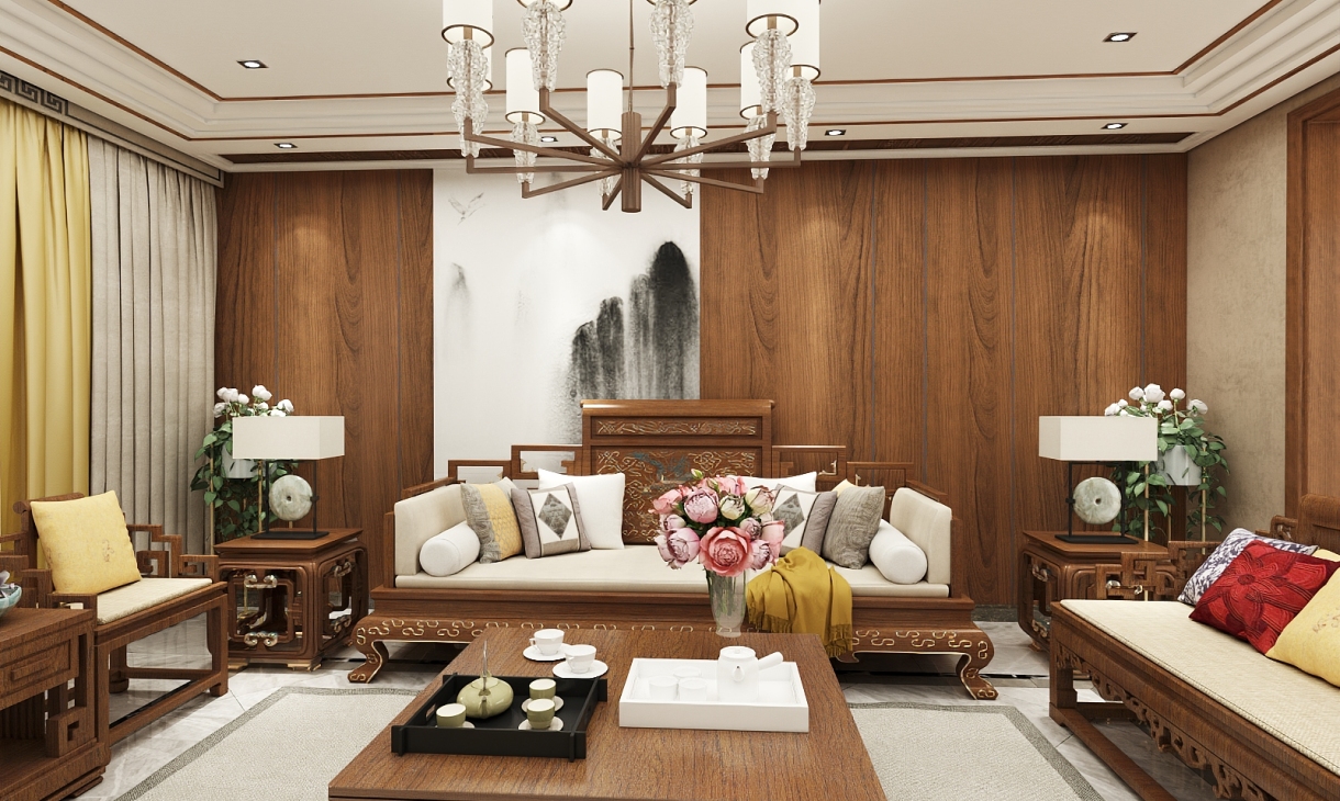 本方案整體風格為中式風格,依據業主的喜好我們進行了結構設計,功能布局合理,使一個大型、繁瑣、復雜的空間變得有條理,有順序,有效率。古典而不陳舊,厚重卻又典雅。