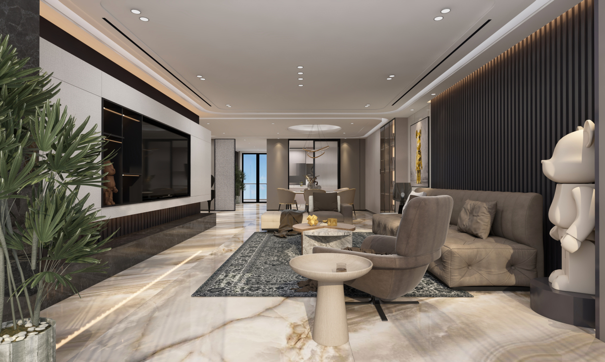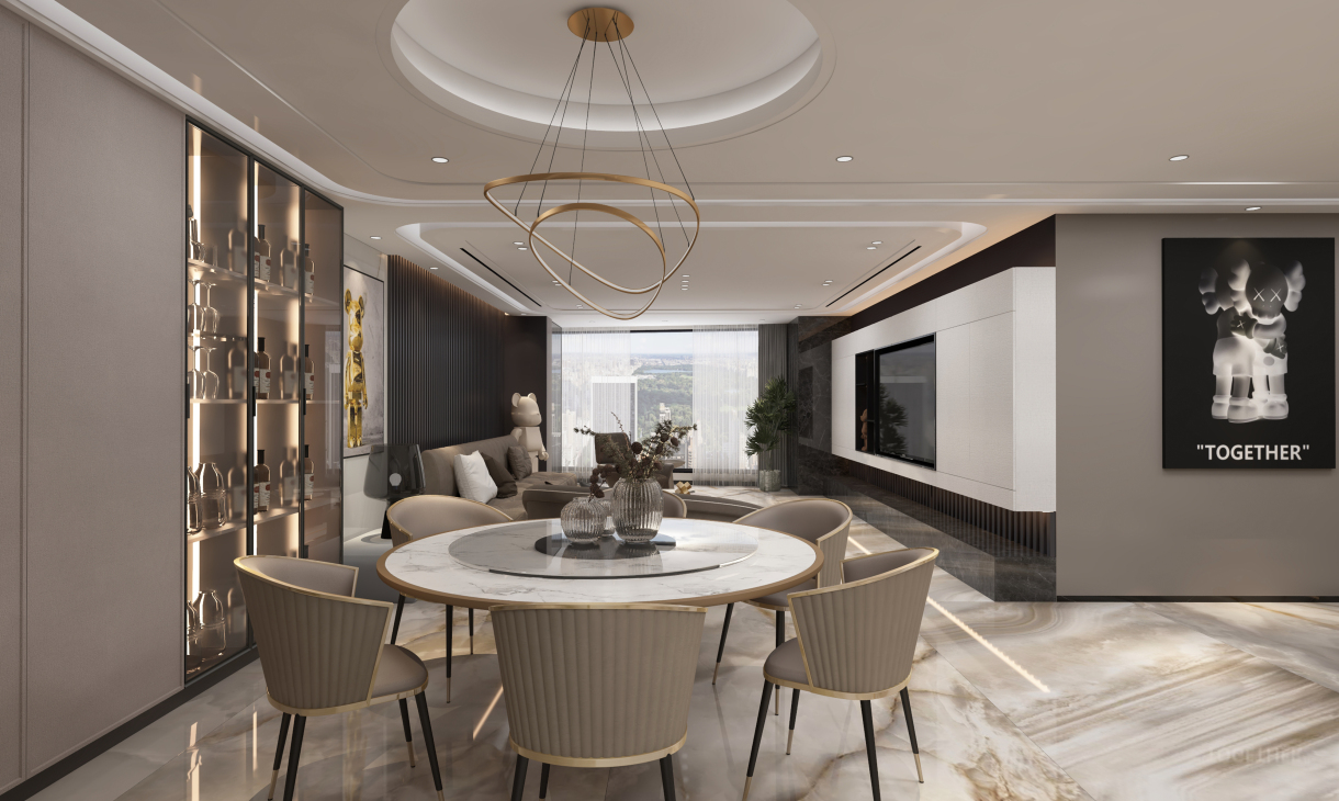 每個空間至少2張效果圖+1張全案全景圖展示,方案描述完整,所有空間需命名。