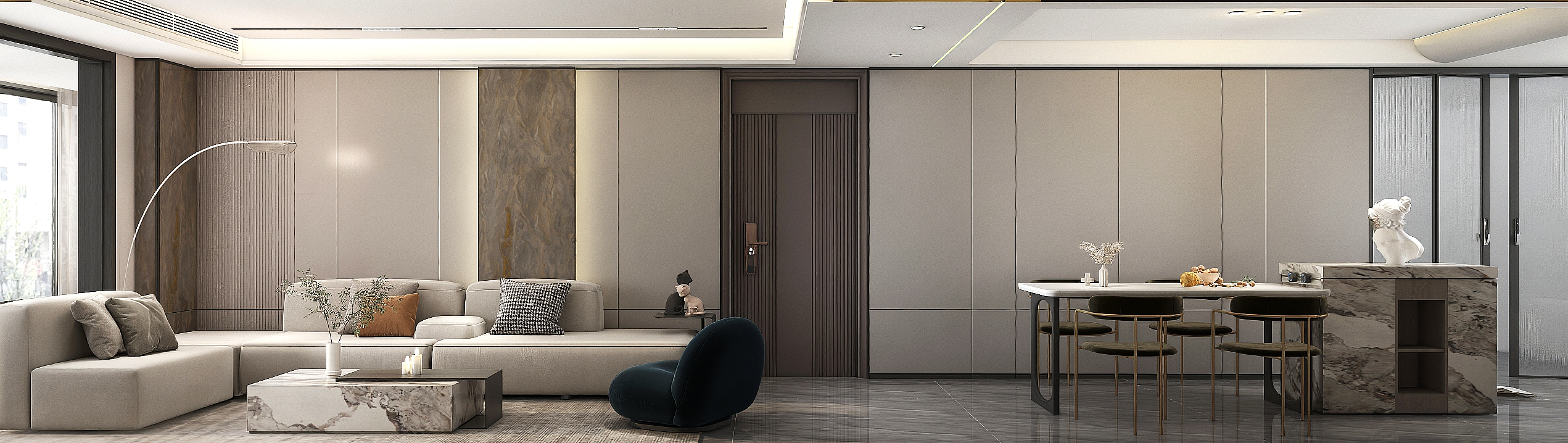 每個空間至少2張效果圖+1張全案全景圖展示,方案描述完整,所有空間需命名。