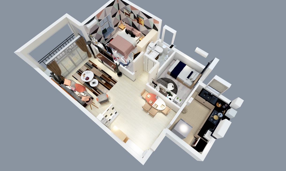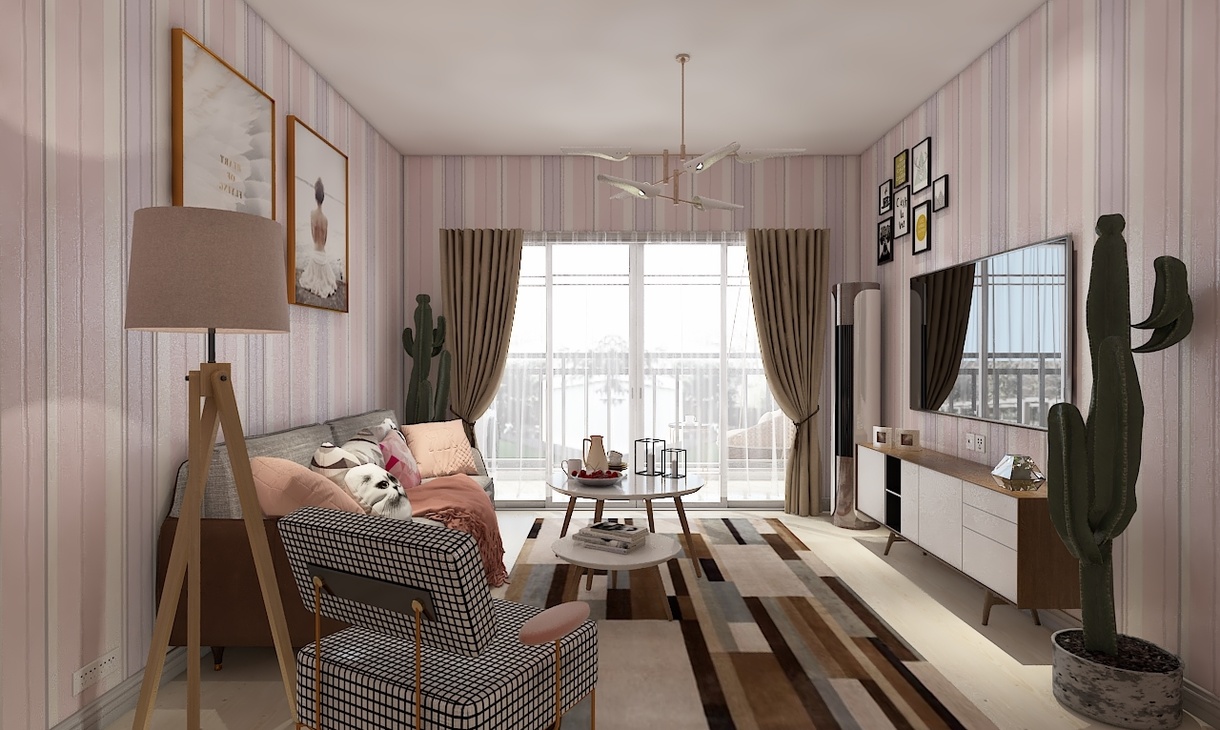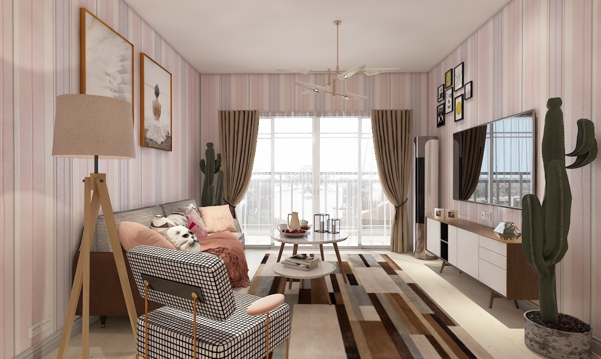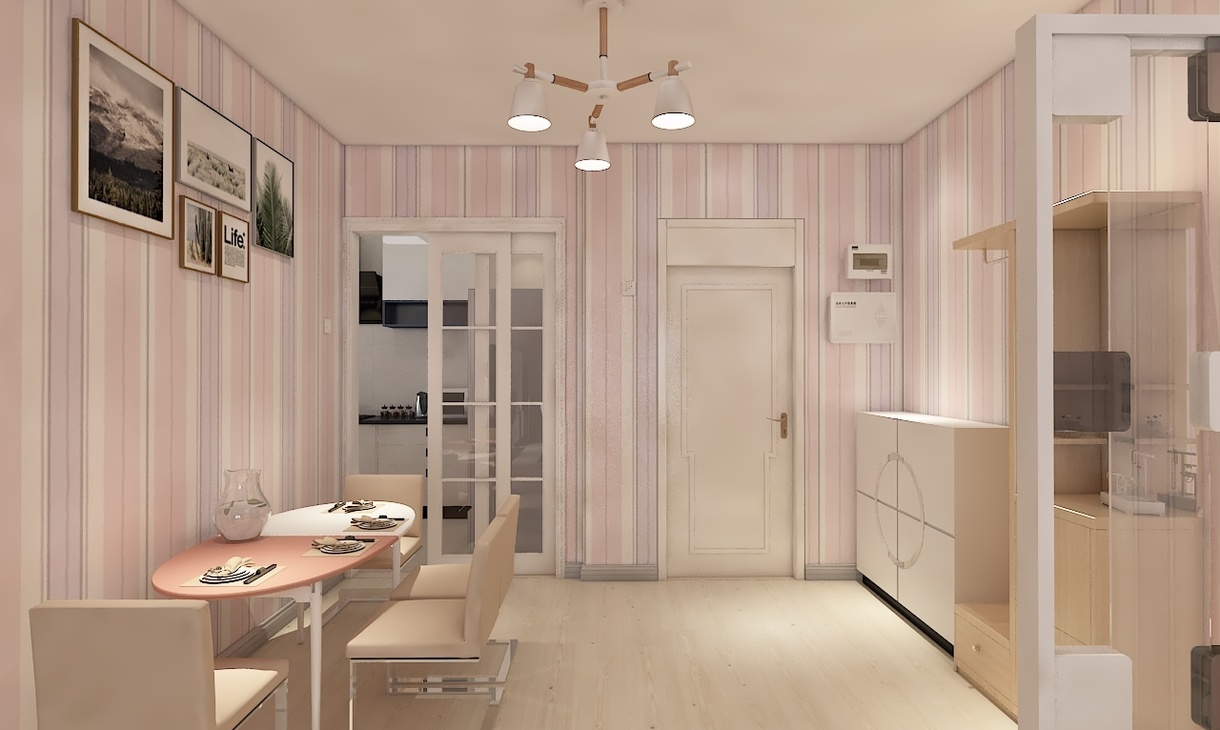 此方案針對追求生活質量的現代女性,以粉色系為主色調,搭配深色系、白色系和原木色來打造優雅溫馨的北歐風情之家。根據陽光城·麗景灣的實際戶型,將小陽臺與廚房打通,增加廚房空間,便于使用。客餐廳之間用隔斷柜隔開,區分其功能而又統一風格。主臥采用暖色調設計以營造溫暖舒適的氛圍。另一個房間配置了床和書桌,便于用戶在書房和客臥之間切換使用,整體采用稍微冷硬的深色系,幫助用戶保持清醒的頭腦又不至于太嚴肅。