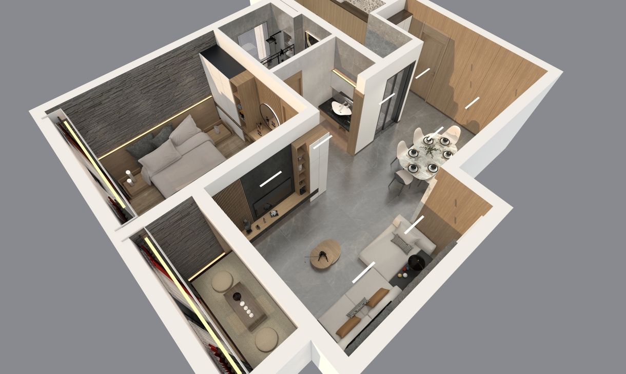每個空間至少2張效果圖+1張全案全景圖展示,方案描述完整,所有空間需命名。