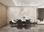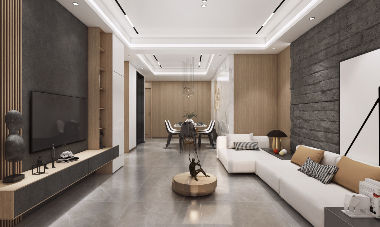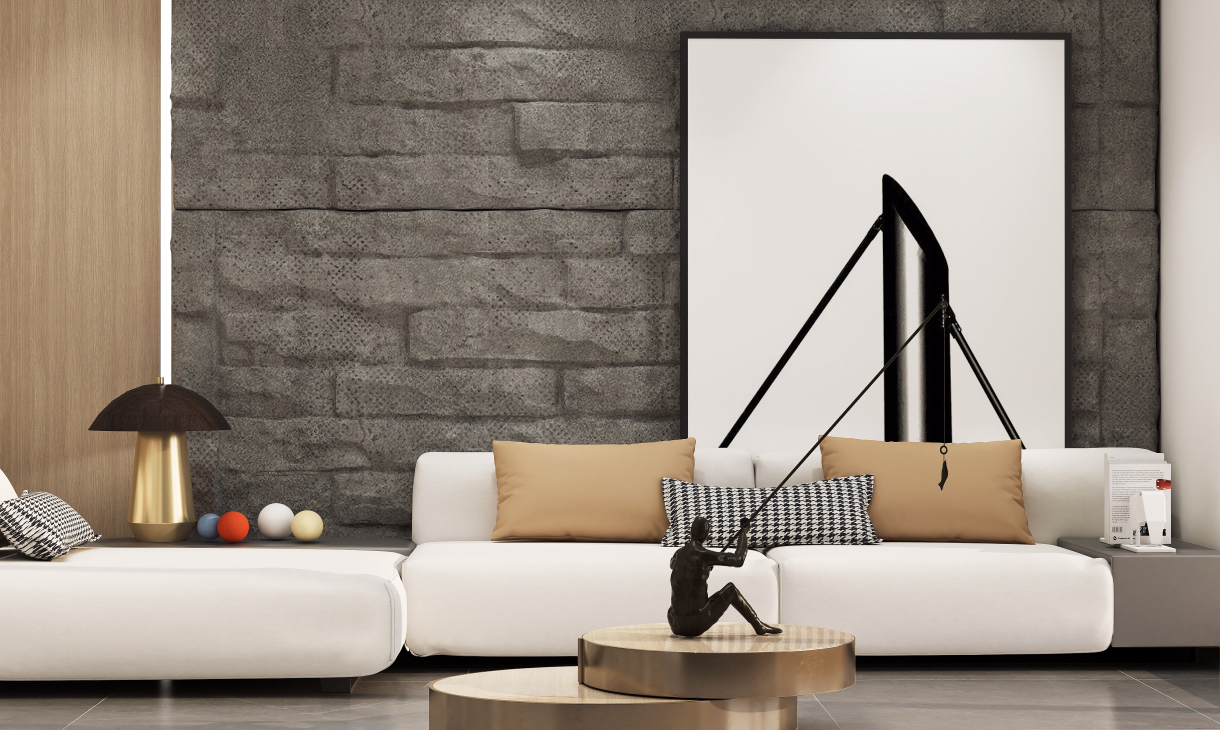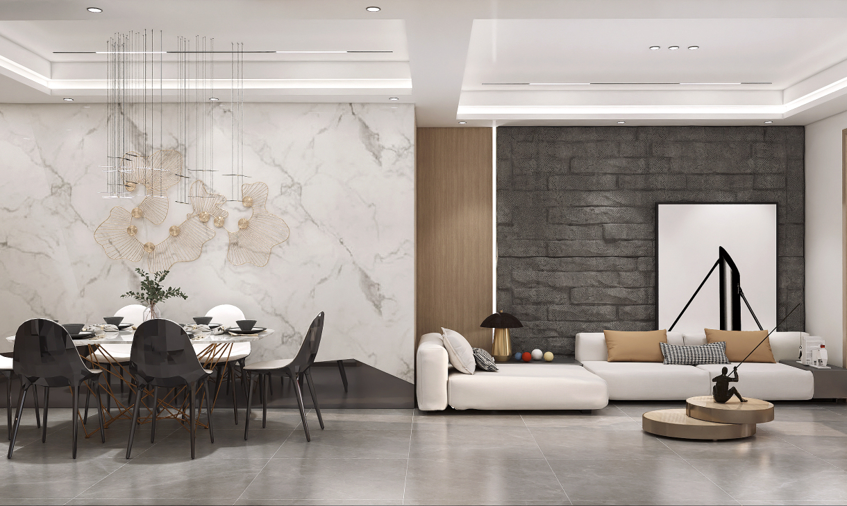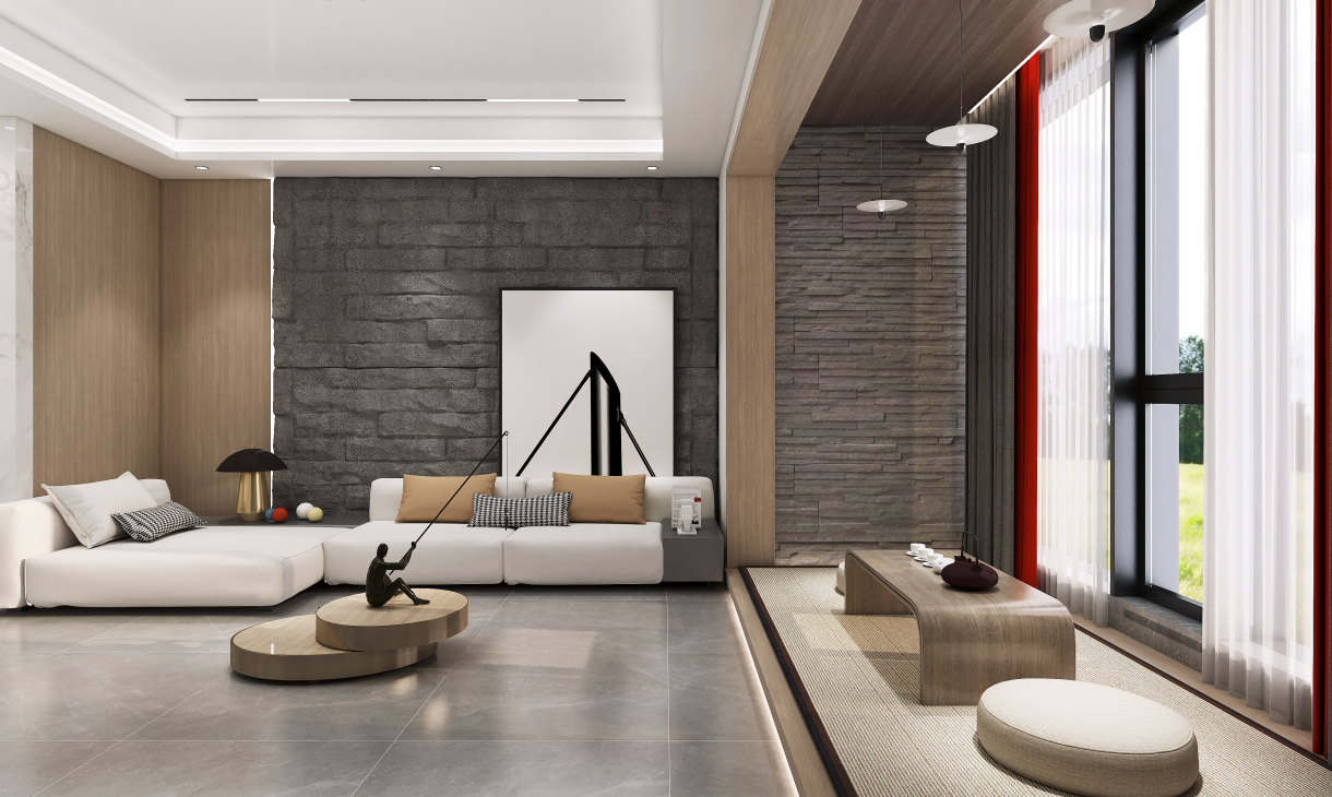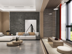 毛石與木飾面以自然原始的肌理,為空間注入無限生機,充滿質(zhì)感的皮質(zhì)沙發(fā)和點綴的金屬器皿與之呼應,以細膩的觸感豐富了空間層次,以流利筆挺的線條美學和低度的顏色,將設計理念娓娓道來。