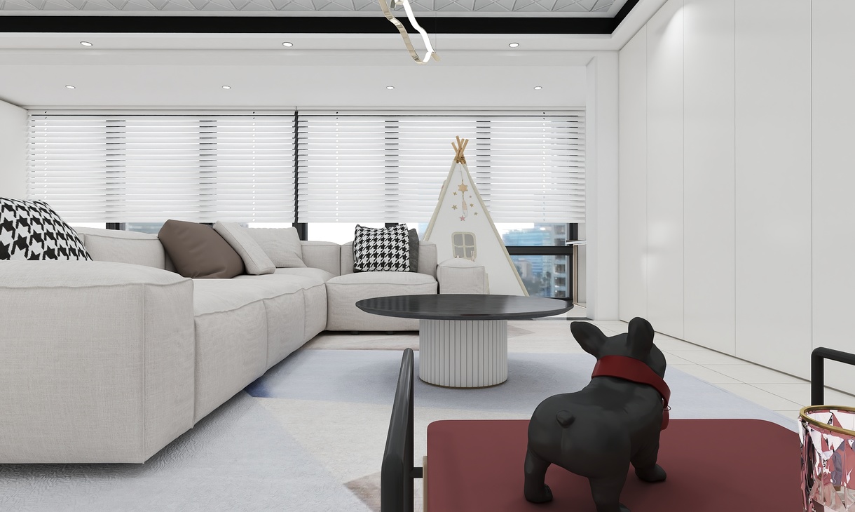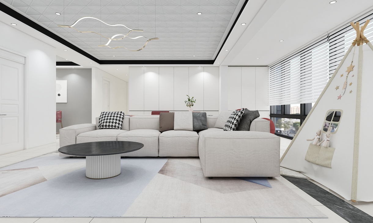 效果圖:全屋概覽效果圖、客廳效果圖、餐廳效果圖、廚房效果圖、兒童房效果圖、主臥效果圖