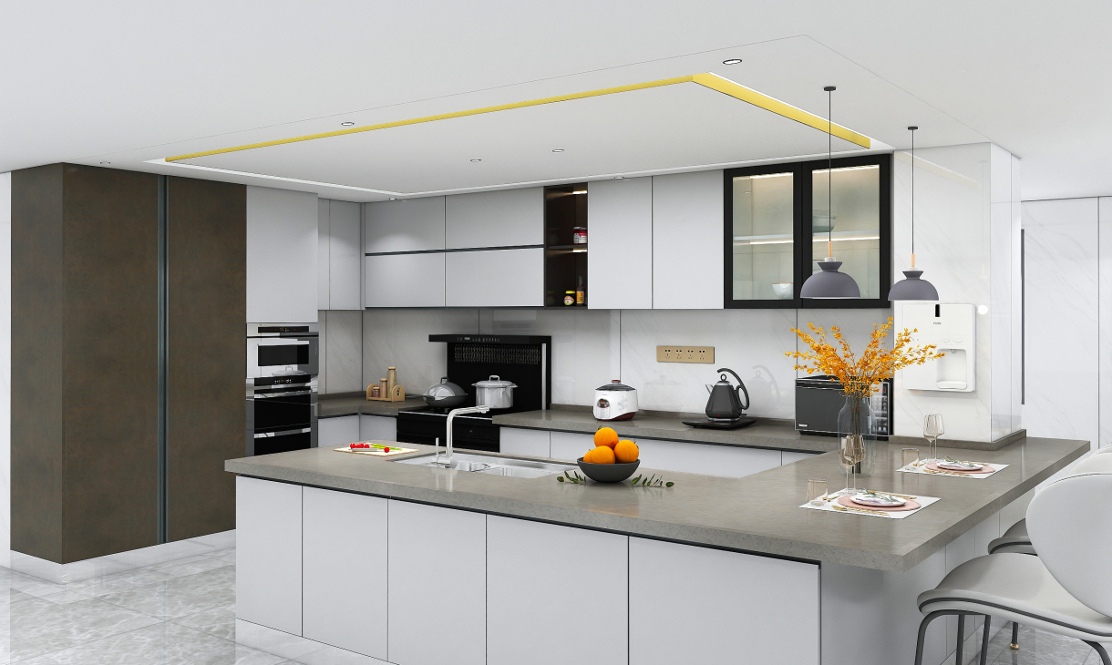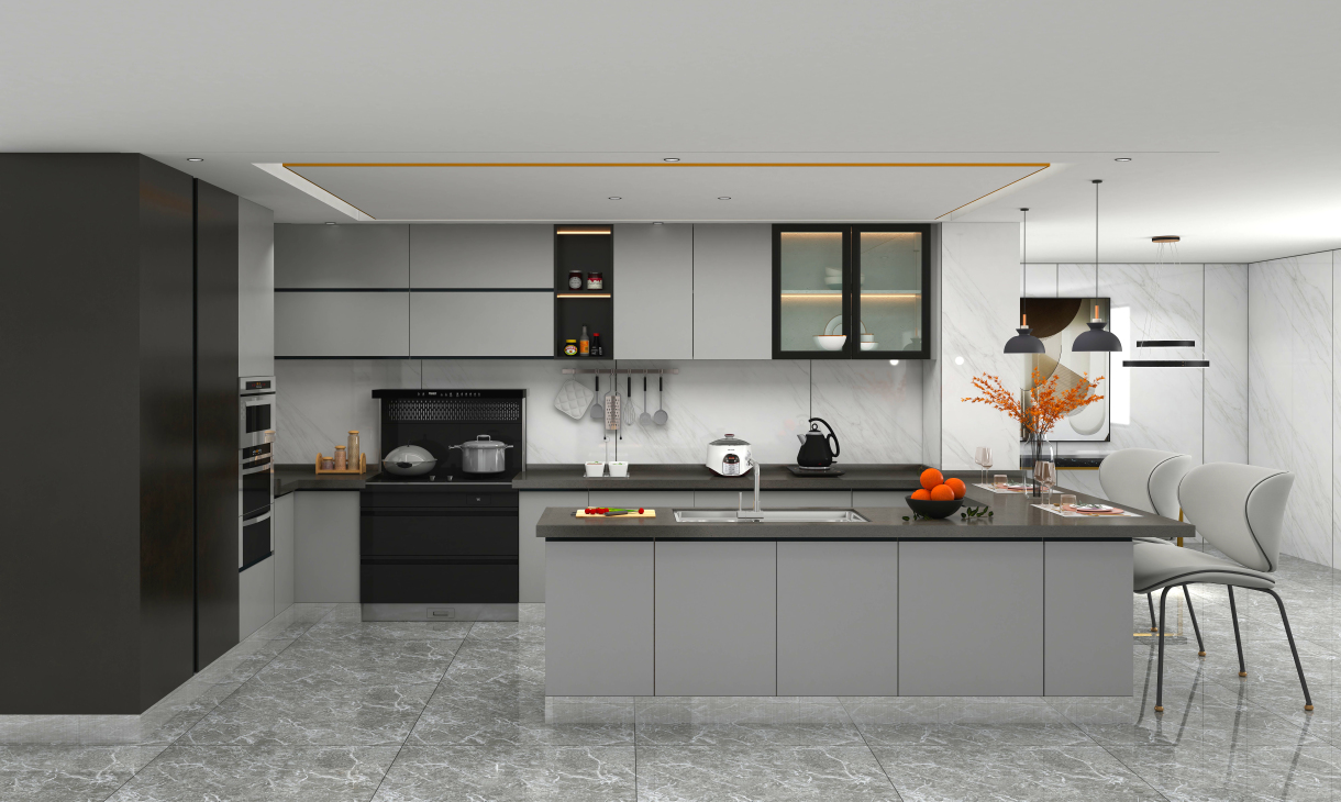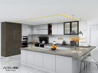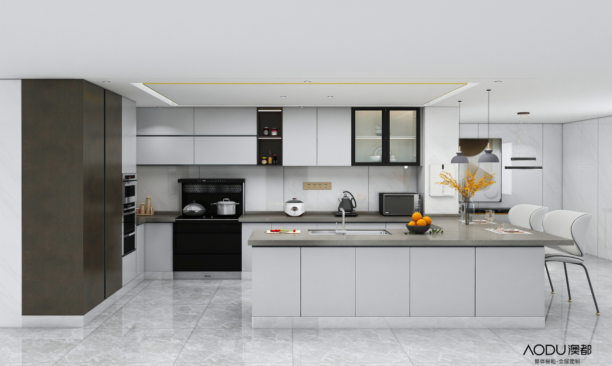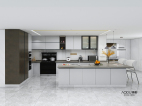 現代風格廚房,門板運用了歐洲進口愛格板材,深淺搭配