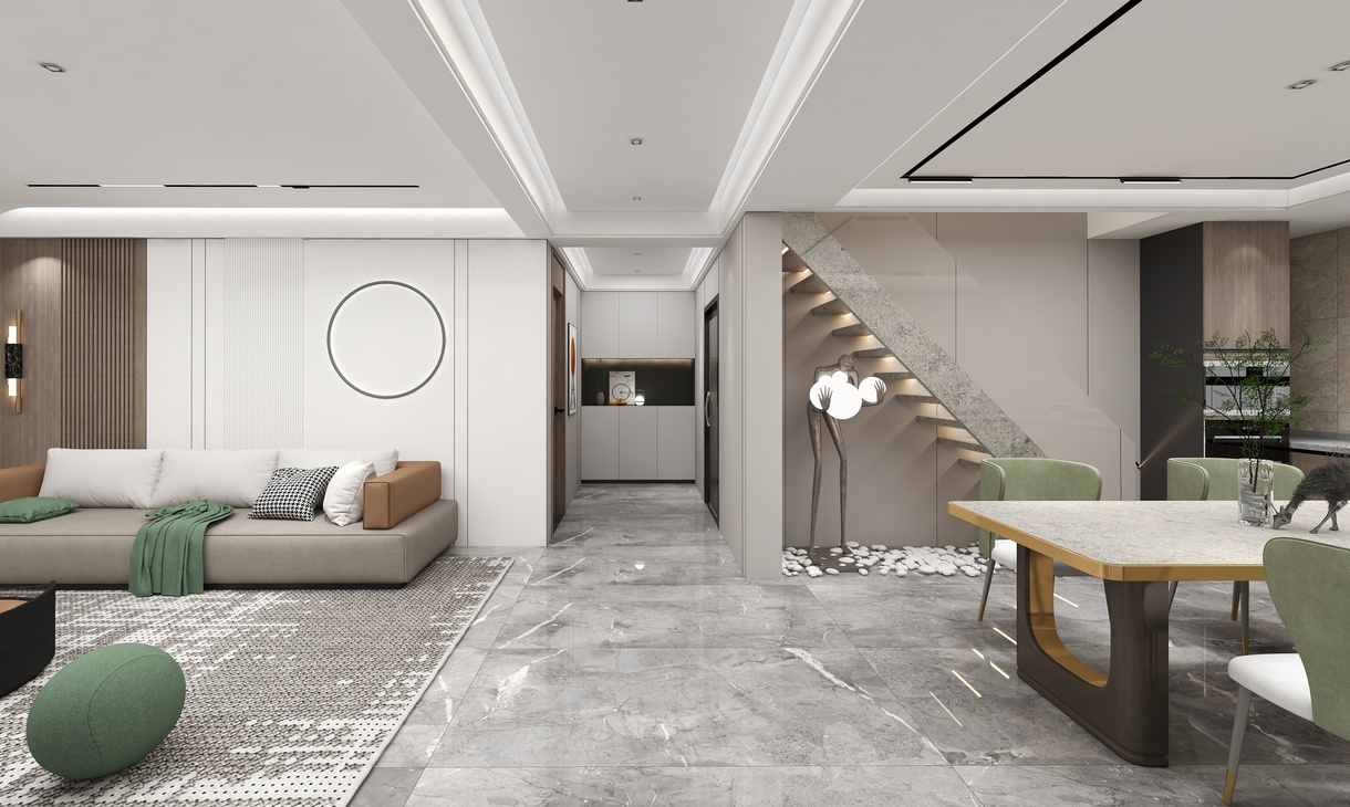 每個(gè)空間至少2張效果圖+1張全案全景圖展示,方案描述完整,所有空間需命名。
