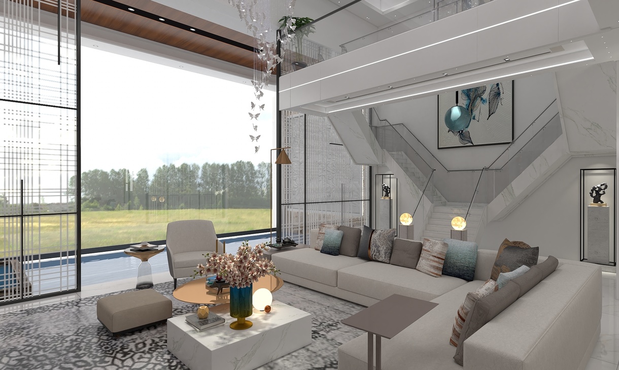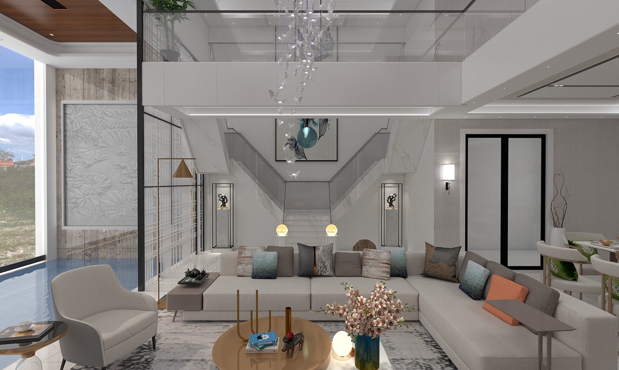 每個空間至少2張效果圖+1張全案全景圖展示,方案描述完整,所有空間需命名。