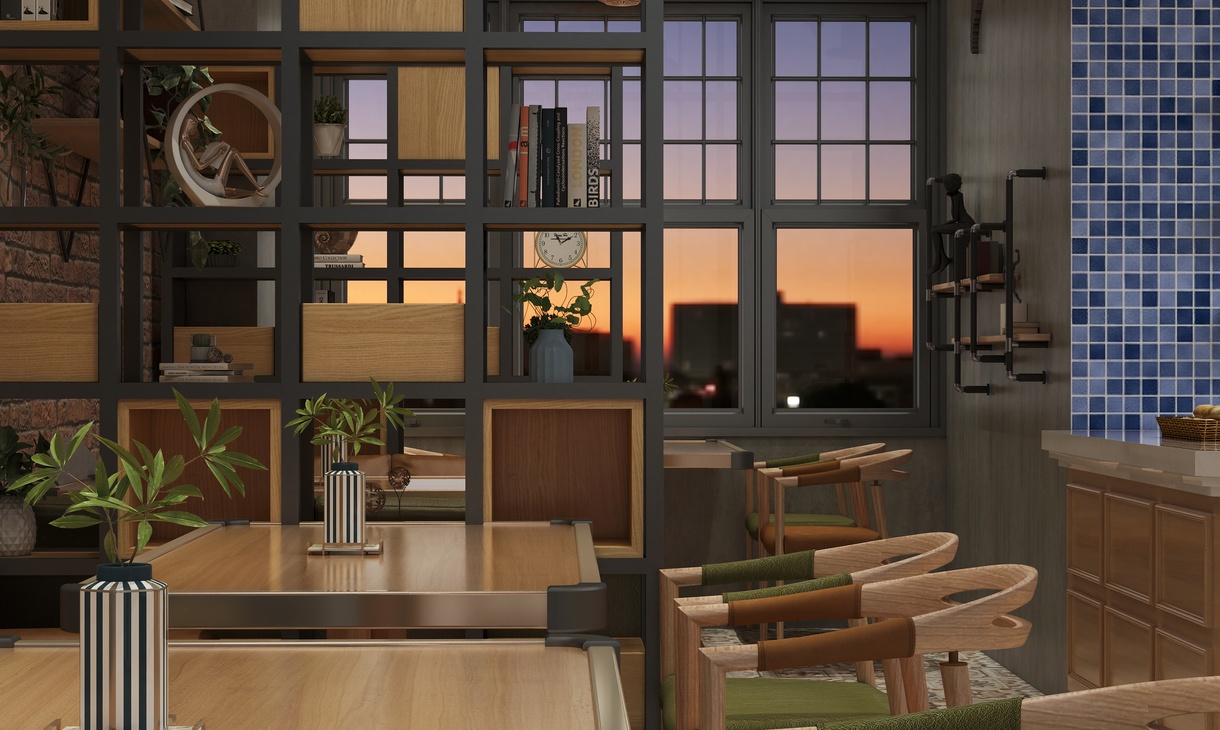 暗色木質(zhì)制品的魅惑,是那種強(qiáng)韌又耐久的材料,這種材料時(shí)常在人類(lèi)的生活中不斷出現(xiàn),將金屬與木做混搭,既能為面包店保留了溫度,又不失粗獷感。以復(fù)古飾品點(diǎn)綴,一張張的皮革沙發(fā)、一個(gè)個(gè)鐵藝的柜架,再配上幾盆綠植,讓面包店文藝氣息蹭蹭蹭的往上漲。