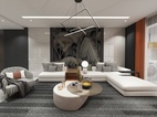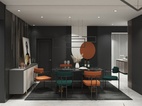 客廳以低調內斂的灰色調為主,結廬人境,無車馬喧,溫文爾雅。簡約方正的線條勾勒出家具陳設的清朗俊逸,富于幾何的理性魅力。