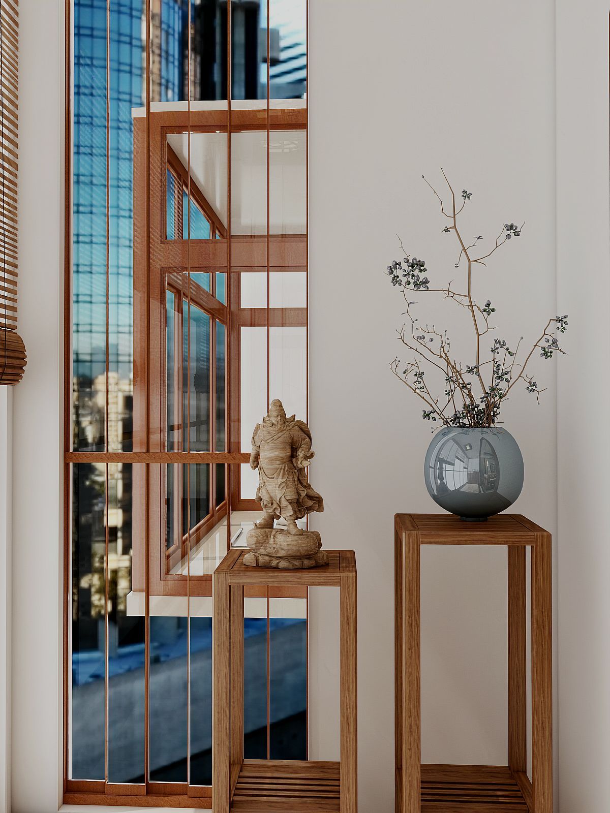 未做過多修飾,置了兩個(gè)花架和斗柜,剩余的讓屋主發(fā)揮想象力。
