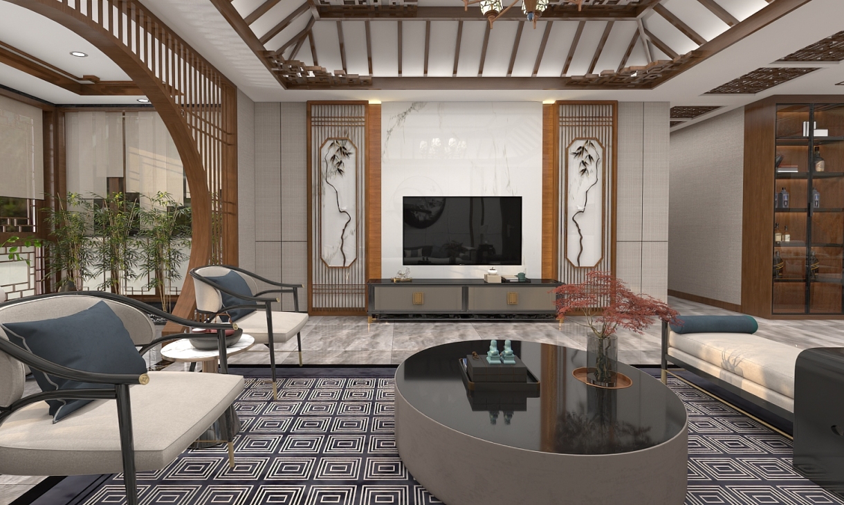 本案便運(yùn)用現(xiàn)代的手法,把木元素提煉,注入中式韻味。現(xiàn)代中式的客廳設(shè)計(jì)在裝飾細(xì)節(jié)上崇尚自然,將傳統(tǒng)元素和現(xiàn)代元素相互融合,打造出簡(jiǎn)潔時(shí)尚又富有傳統(tǒng)韻味的空間,將傳統(tǒng)文化的精髓在當(dāng)今社會(huì)得到合適的體現(xiàn)。