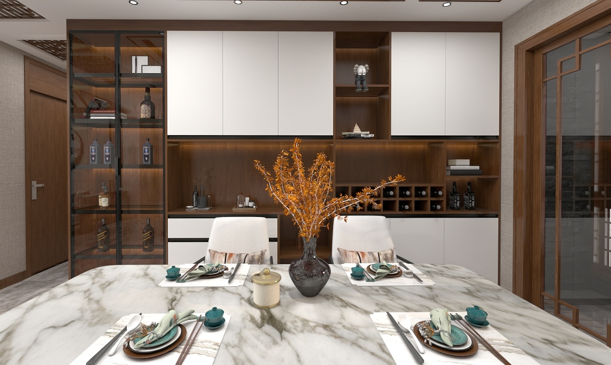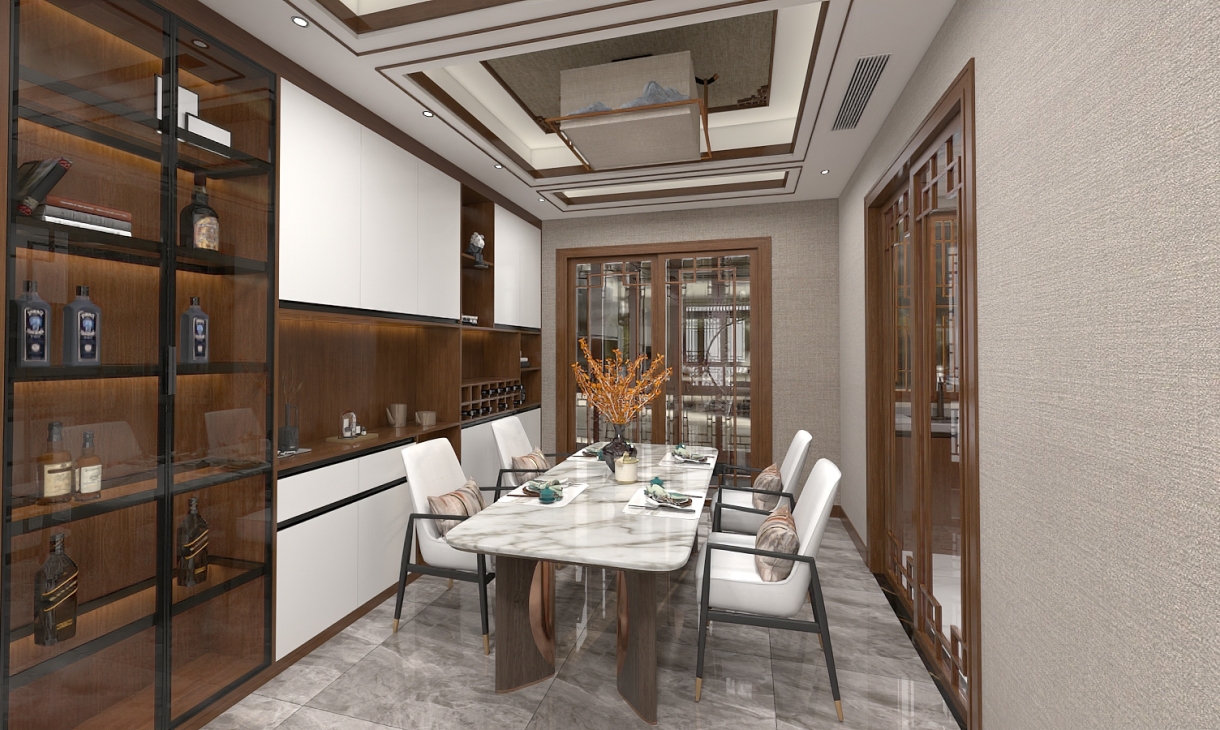 餐廳是相濡以沫,廚房是相知相伴的愛(ài)人,只聞美食與愛(ài)伴隨著孩子的歡聲笑語(yǔ)。餐廳,依然傳承中國(guó)人的飲食文化,卻又不古板,素雅大氣,新中式風(fēng)格既滿足了現(xiàn)代人的居住要求,又保留了現(xiàn)代感十足的居家理念。