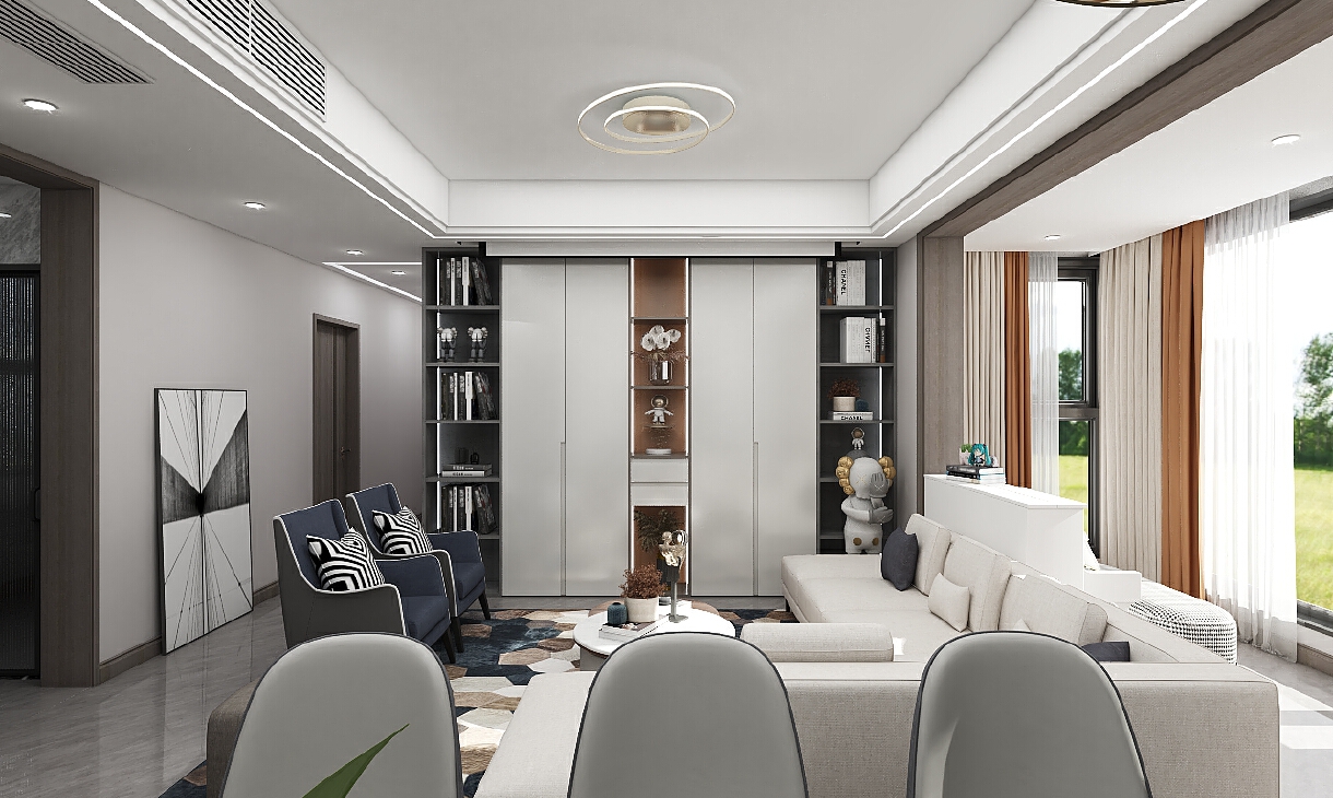 每個空間至少2張效果圖+1張全案全景圖展示,方案描述完整,所有空間需命名。
