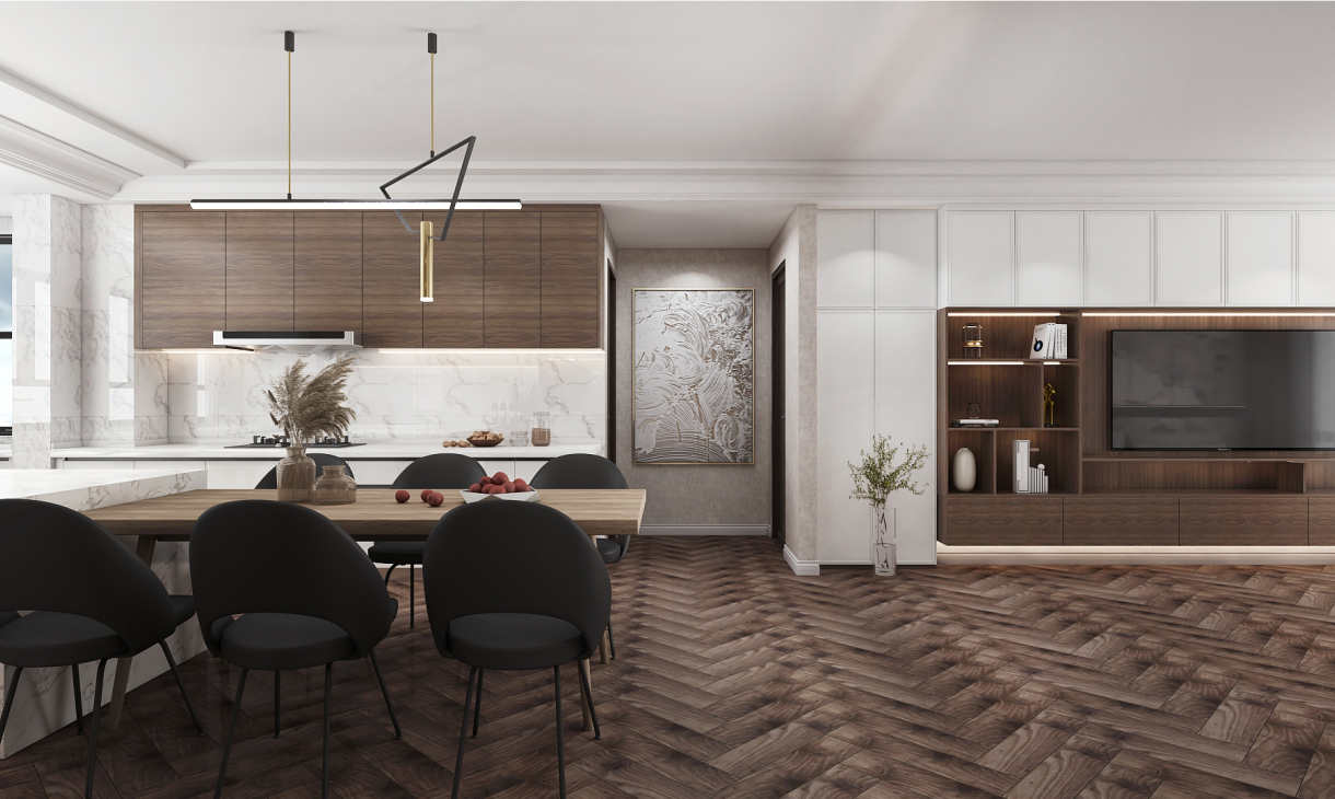 每個空間至少2張效果圖+1張全案全景圖展示,方案描述完整,所有空間需命名。