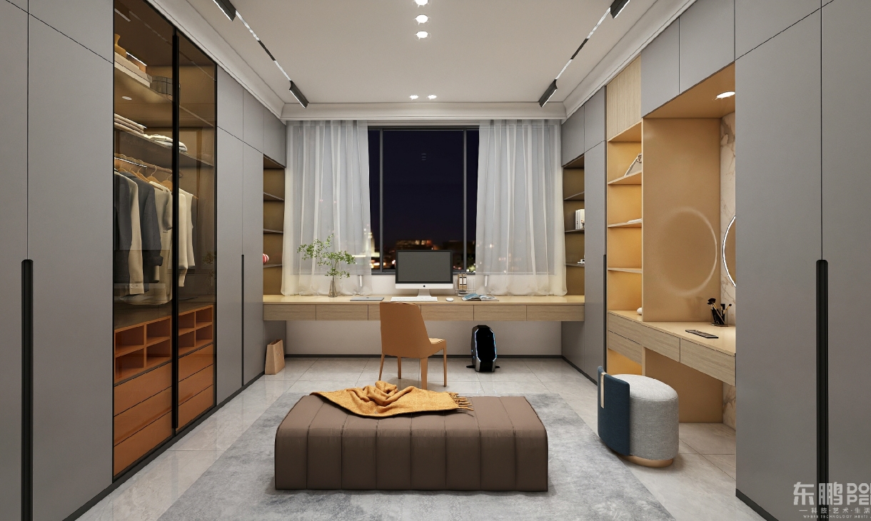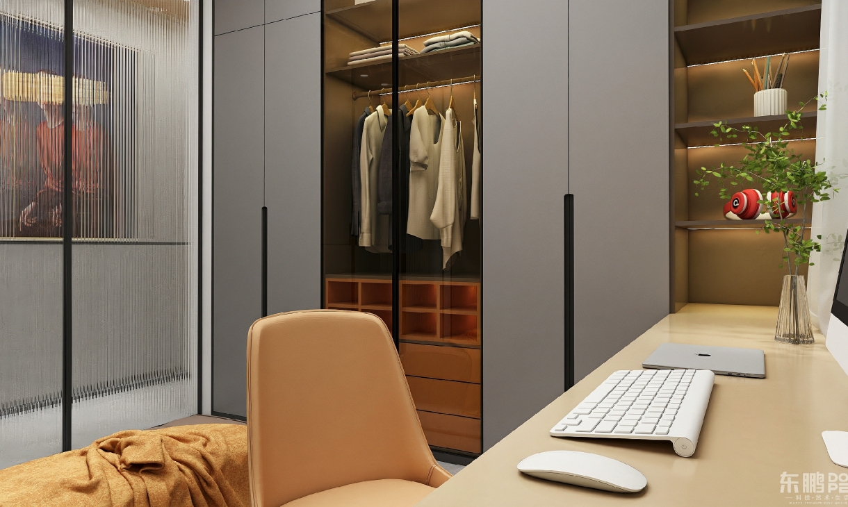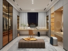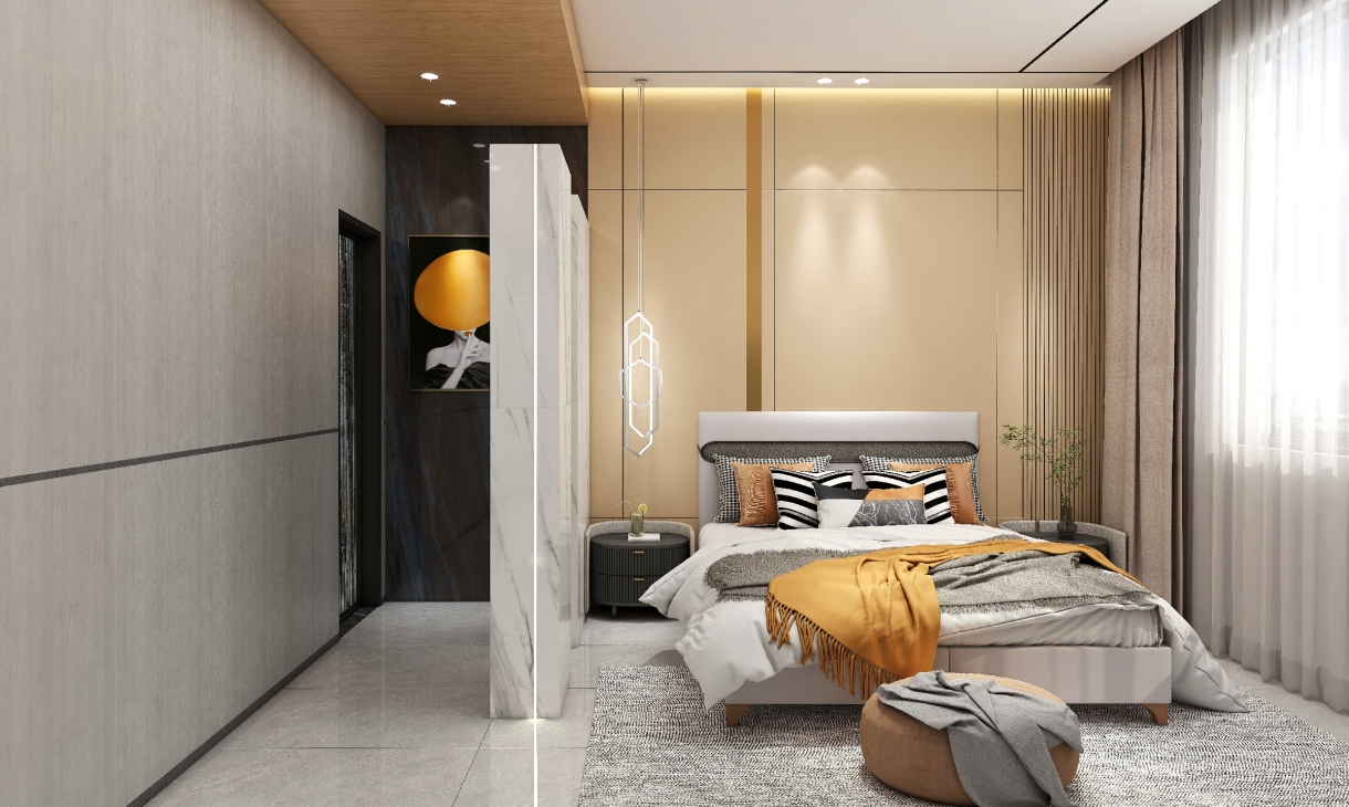 人對臥室的眷戀,往往寬于所思所想。我們不愿意以裝飾物吸引人的眼球,而是執(zhí)著追尋那些潛藏生活表象之下的美好因子。主臥拉開與喧囂的距離,以闊綽的生活尺度容納獨立衣帽間、衛(wèi)浴以及陽臺等空間,讓日常起居成為一種享受。通過色彩優(yōu)雅的韻律感,空間呈現(xiàn)出高級的年輕感和品質(zhì)感。