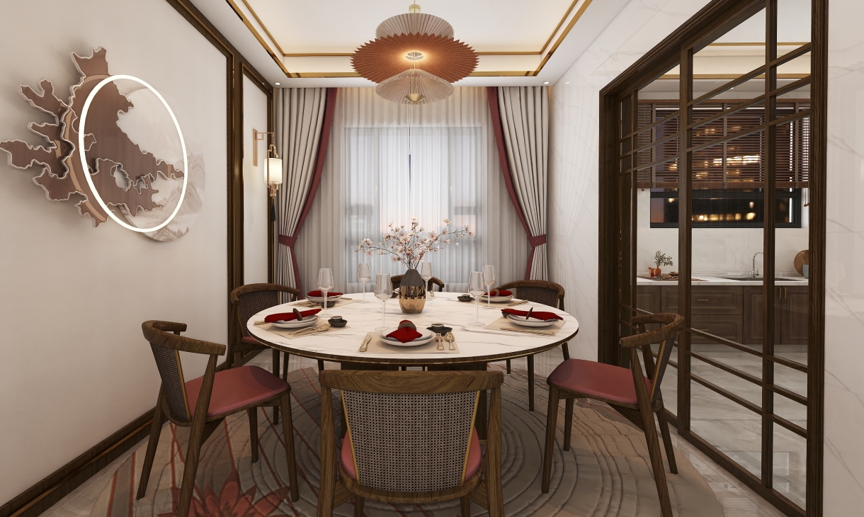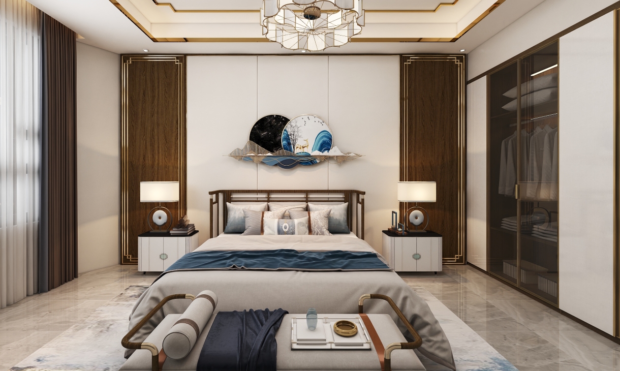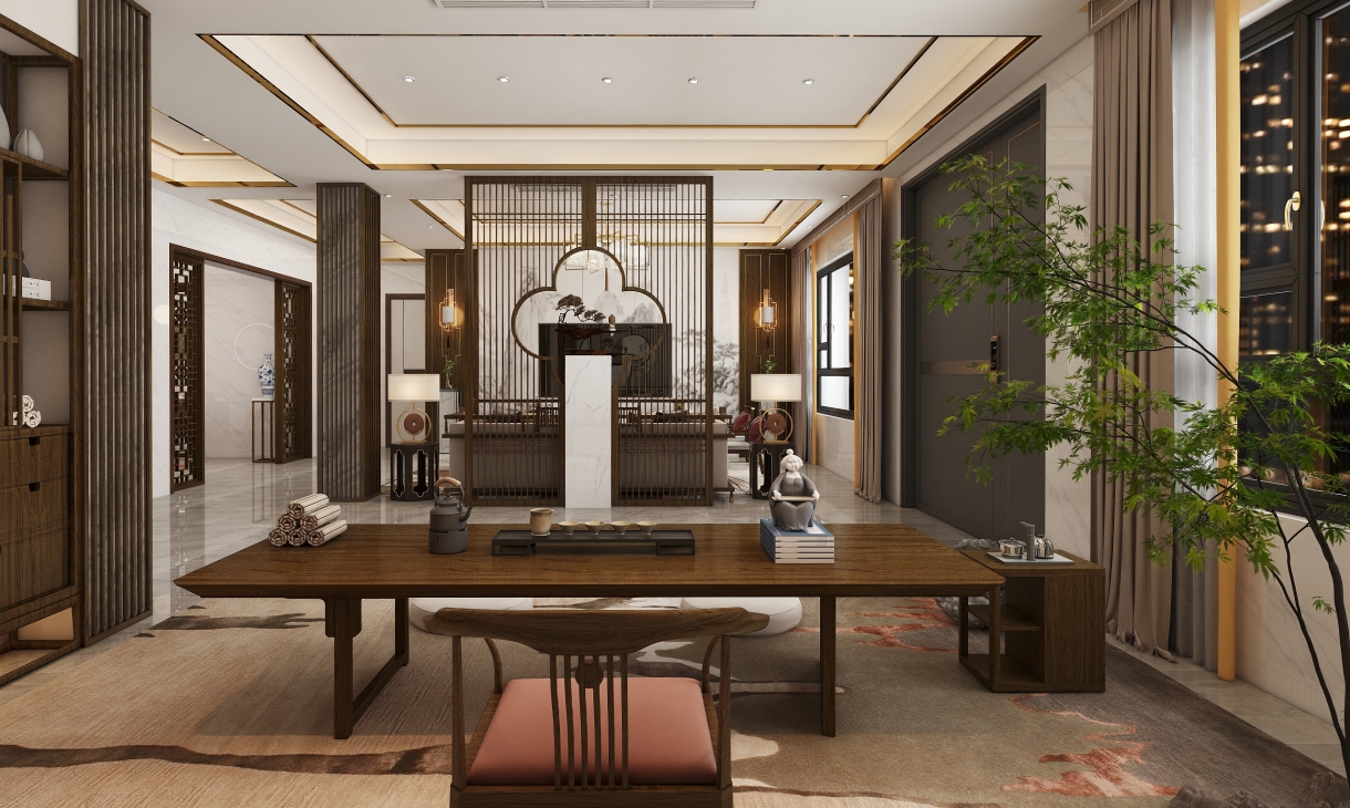 新中式風(fēng)格是中式元素與現(xiàn)代材質(zhì)的巧妙兼柔的布局風(fēng)格,它同時(shí)明清家具、窗欞、布藝床品相互輝映,經(jīng)典地再現(xiàn)了移步變景的精妙小品。新中式風(fēng)格還繼承明清時(shí)期家居理念的精華,將其中的經(jīng)典元素提煉并加以豐富,同時(shí)改變?cè)锌臻g布局中等級(jí)、尊卑等封建思想,給傳統(tǒng)家居文化注入了新的氣息