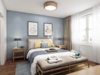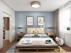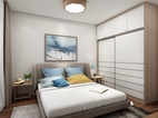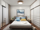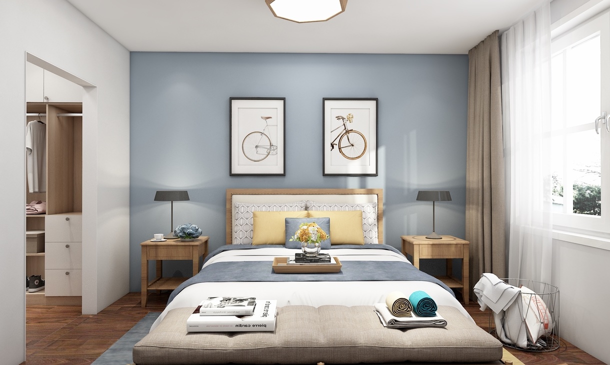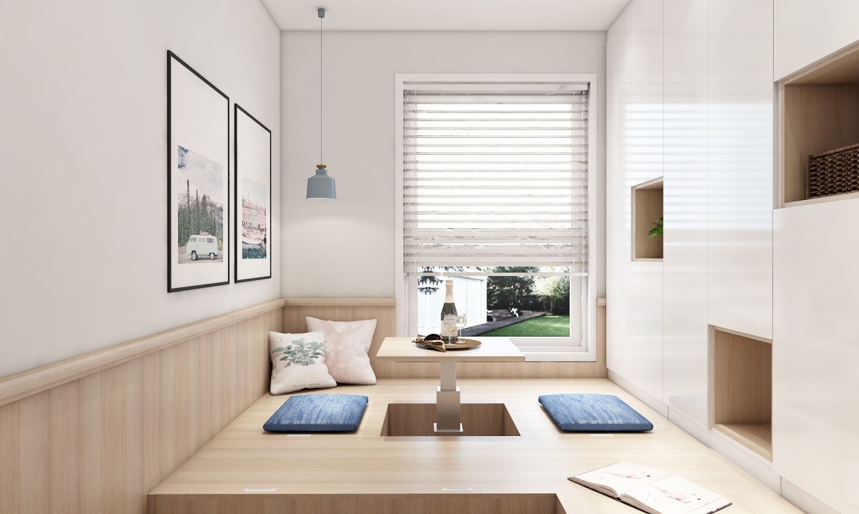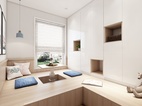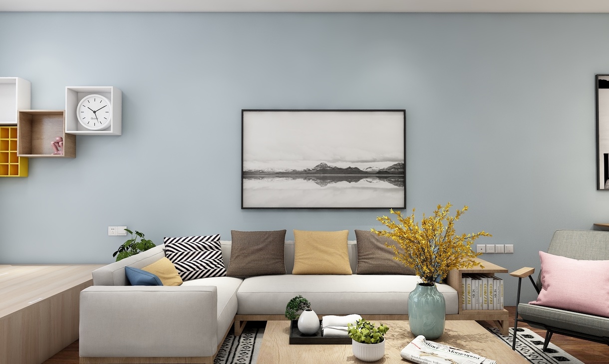 本案圍繞著簡約、靜謐這兩個(gè)特點(diǎn)來設(shè)計(jì),藍(lán)灰色與原木的搭配,原木色的溫馨,中和了藍(lán)色的冷感,空間的格調(diào)變的更自然,也更有家的溫馨舒適。