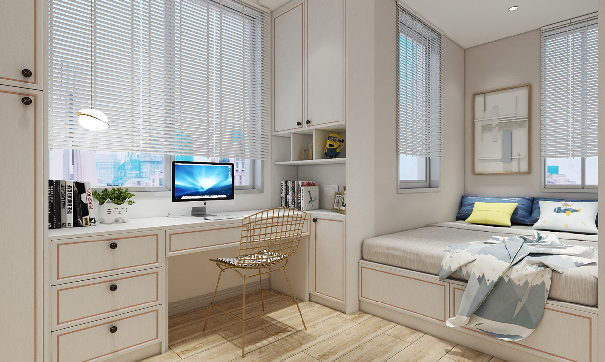 榻榻米,既增加了收納的地方,也使得房間變得很有層次感。