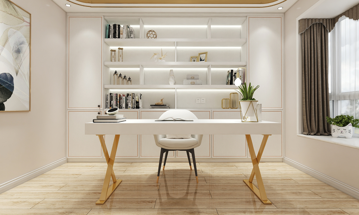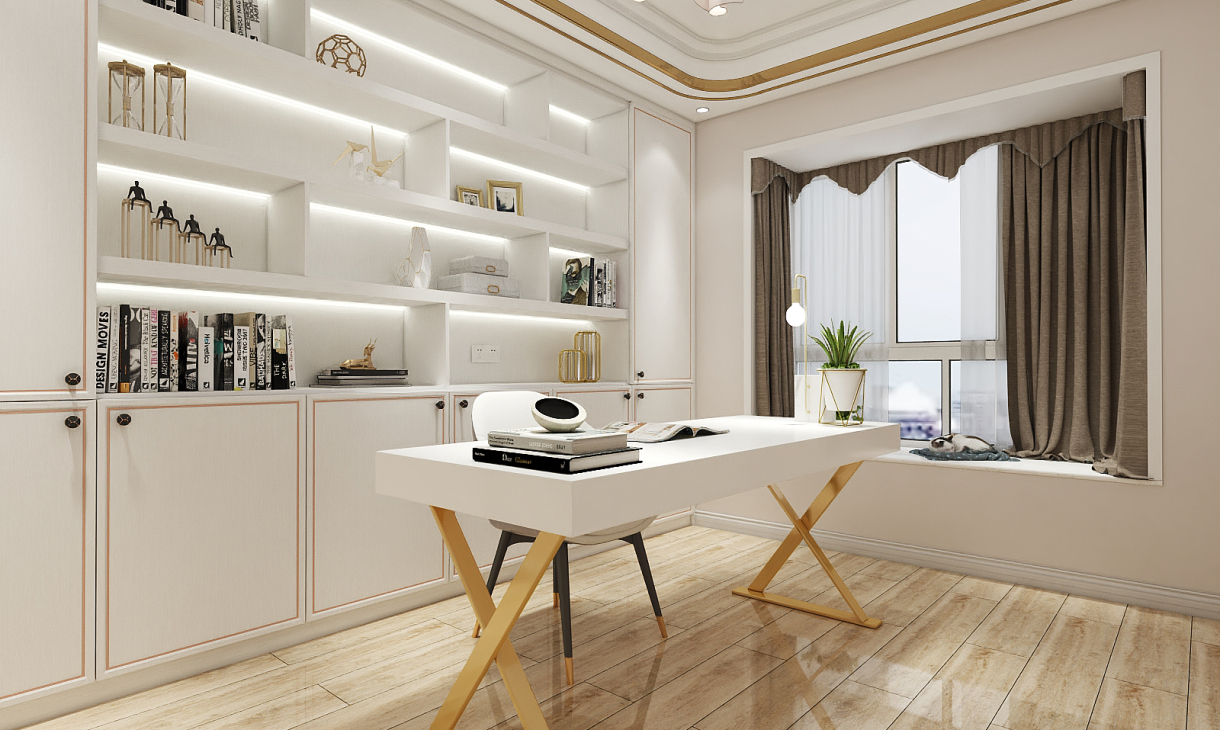 大面積書柜增加收納,也是書房最美得風景。一杯咖啡,就可以開始慢時光。