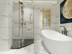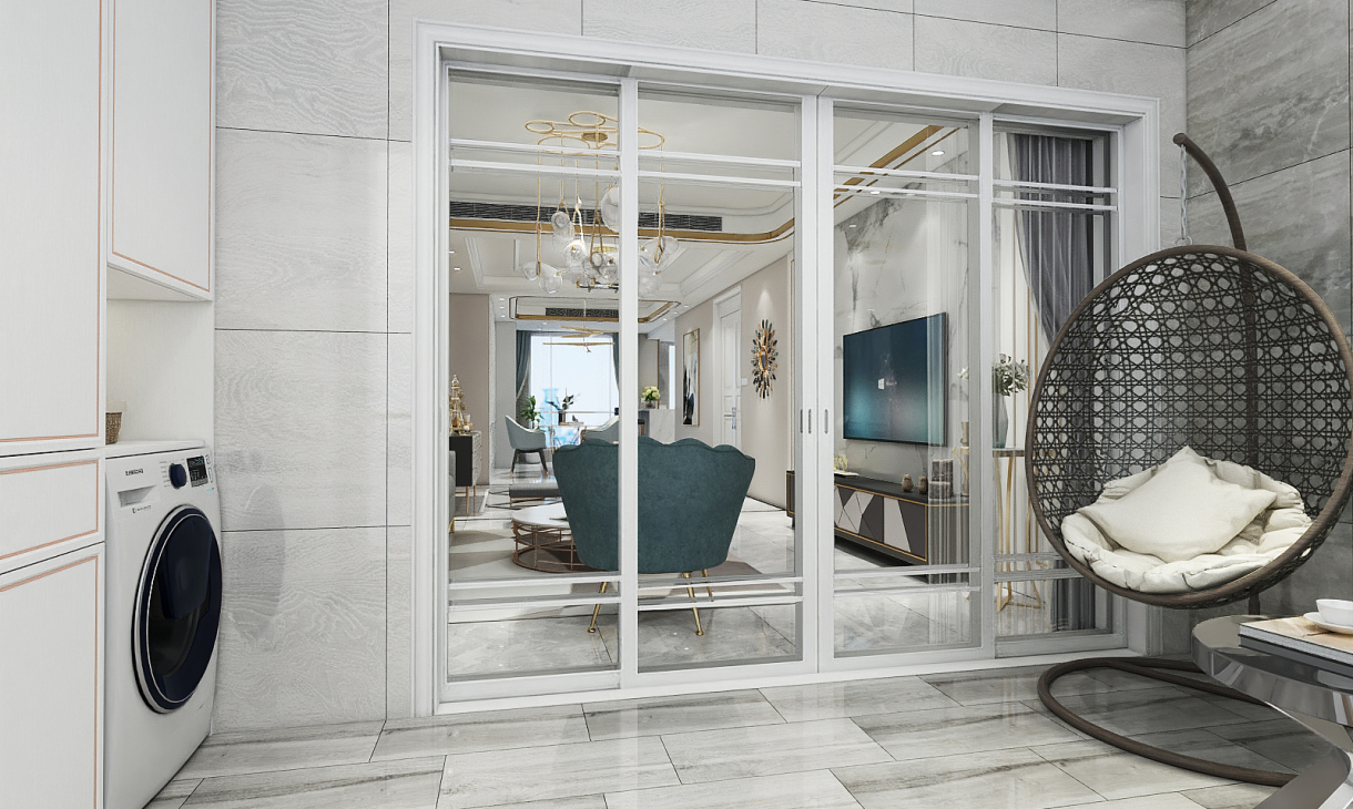 煙灰粉、香檳金、打破全部珍珠白的空間,讓整體蒼白的空間增加了明艷的色彩,浪漫的感覺。