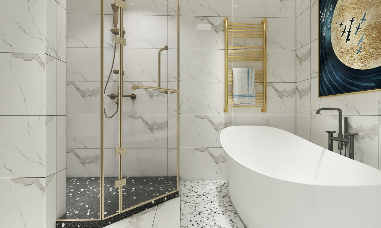 公衛選用六角磚、水磨石,讓視覺層次更豐富。