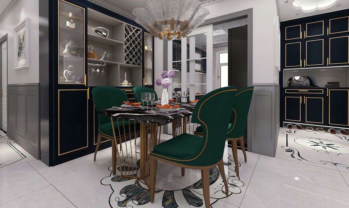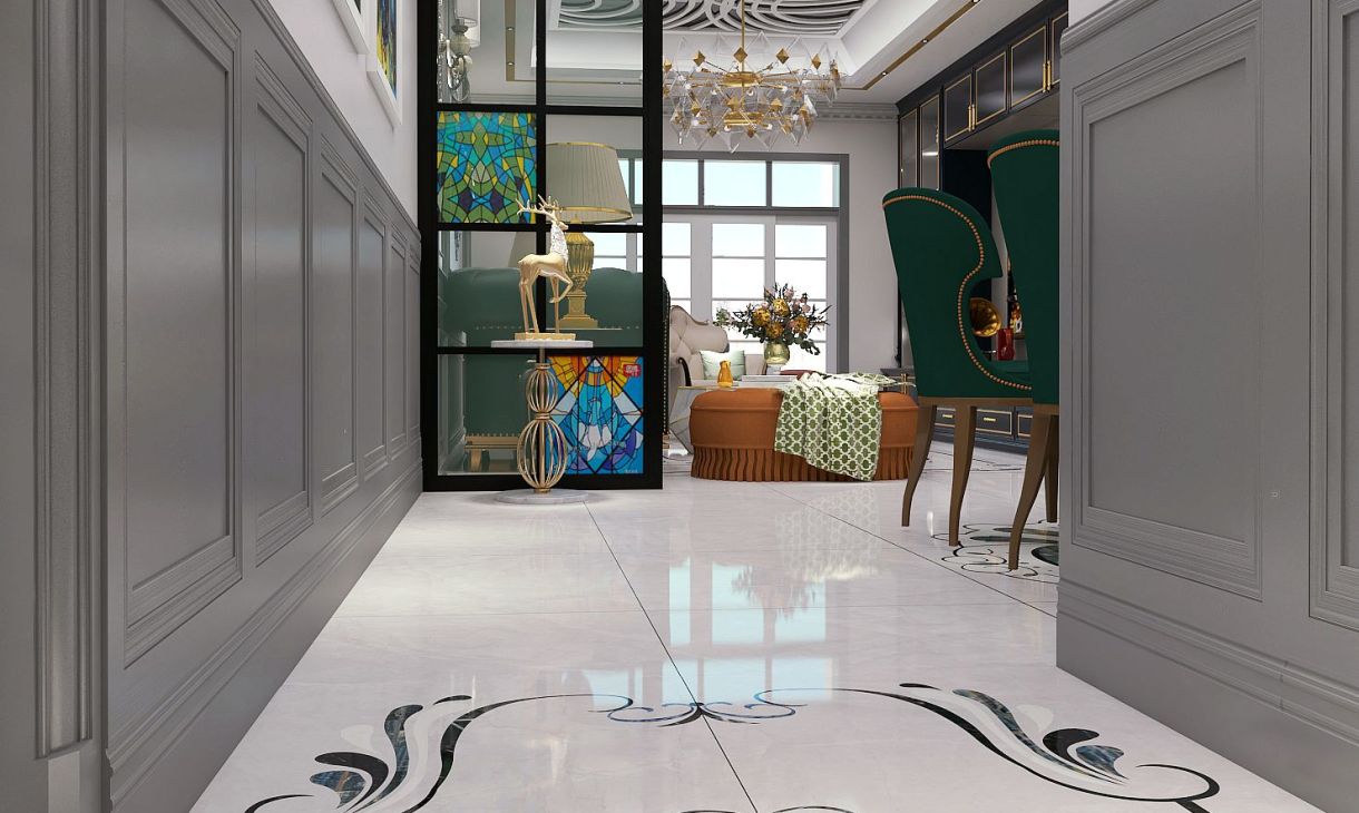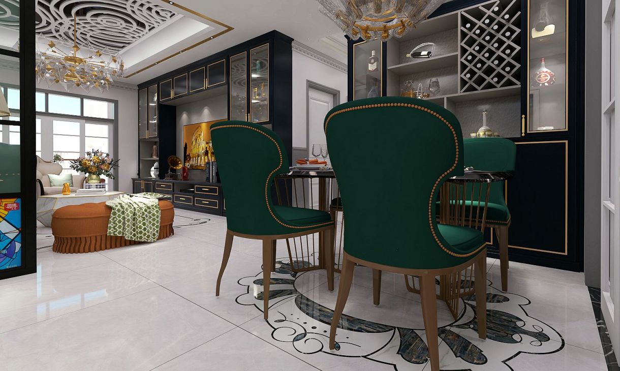 傳統(tǒng)觀念里的歐式是繁瑣復(fù)雜的,本案《藍羽》應(yīng)用現(xiàn)代時尚的符號,把歐式華麗與精美保留,融合流行的輕奢元素,對歐式做最新的解讀,打造夢幻的歐式輕奢空間。瓷磚的拼花造型和配色錦上添花,富有韻律的線條和翎羽造型的搭配,使得整個空間輕盈、靈動,做只屬于自己的性格符號,只屬于自己的《藍羽》空間。