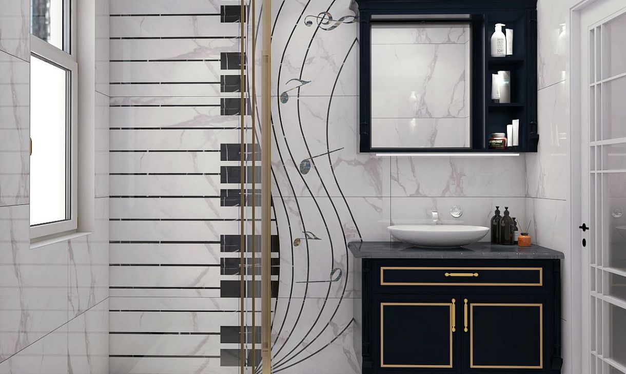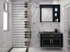 客衛(wèi)是使用頻率最多的地方,黑白色的鋼琴鍵搭配流動的音符,空間充滿韻律感,讓洗漱過程也變得愉悅,給不起眼的地方做最用心的設(shè)計,給人意料不到的驚喜,往往會映像深刻。