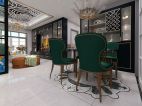 餐廳空間地面瓷磚造型和吊頂完美呼應(yīng),應(yīng)用藍色大色塊點綴,讓整個空間有層次感和焦點。