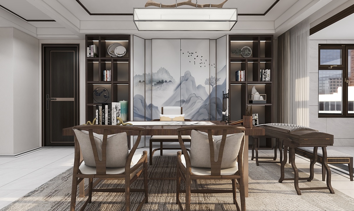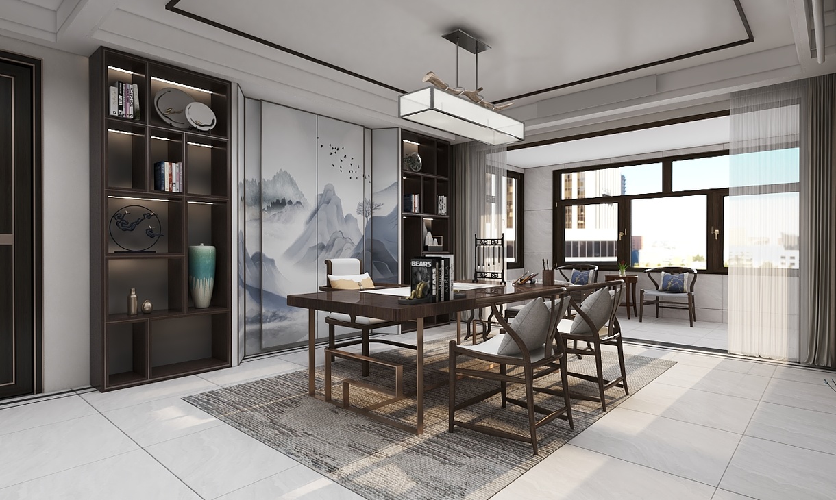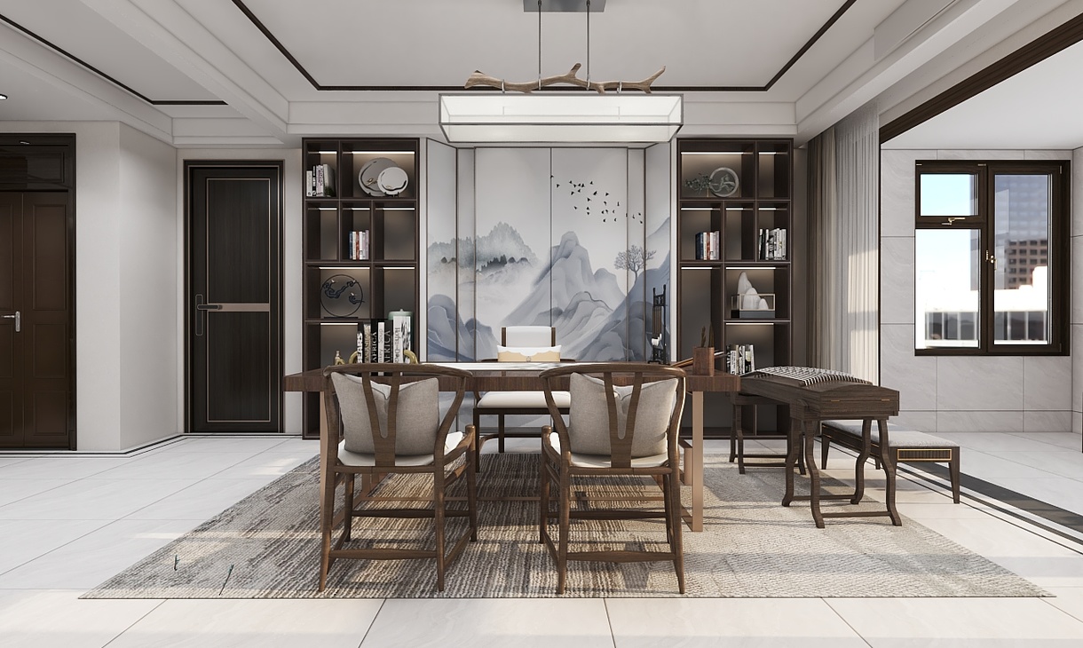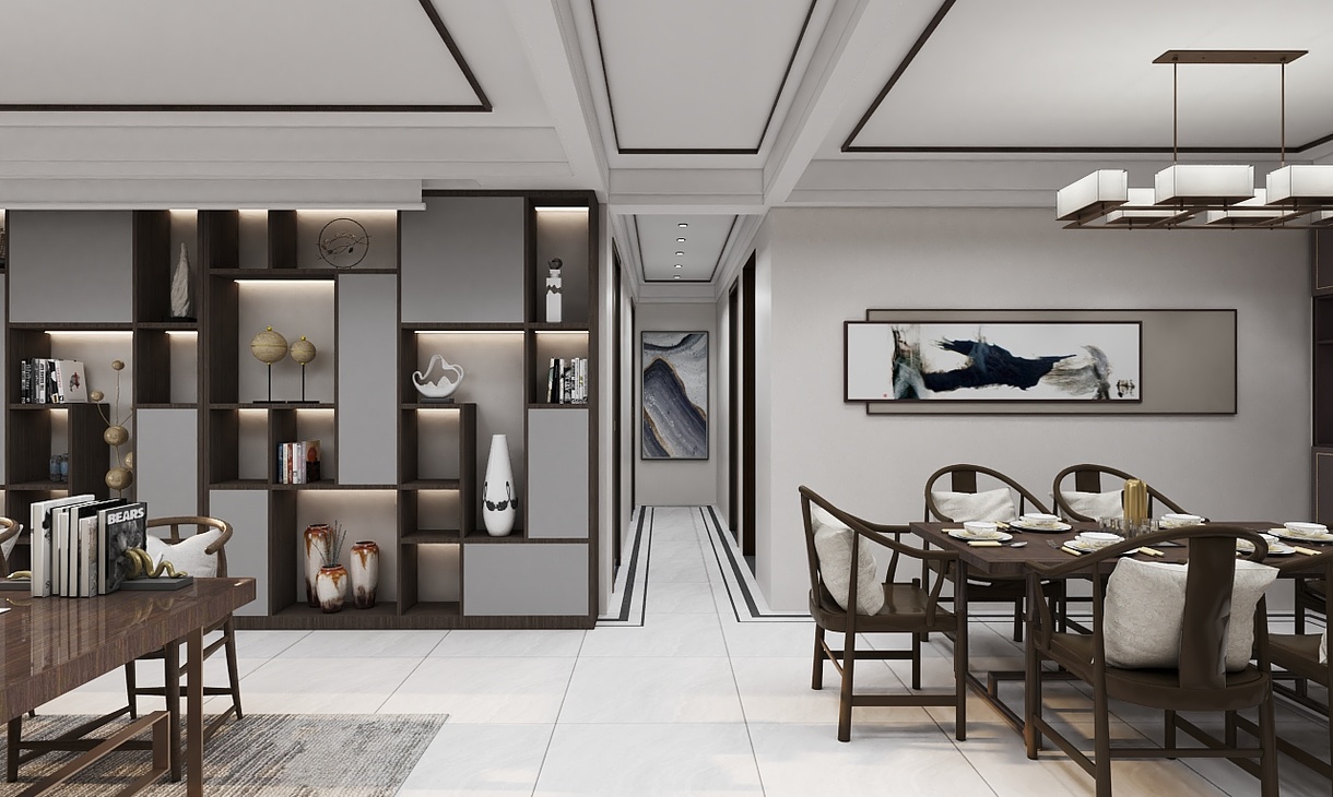 空間軟裝搭配:一房一風(fēng)格,一空間一世界。 本方案客廳(書(shū)房)、餐廳及主臥室新中式為主題風(fēng)格,而兒童房和老人房則適當(dāng)融入其他風(fēng)格。 家是家庭成員的載體,空間服務(wù)于居住對(duì)象。 對(duì)于當(dāng)下追求個(gè)性化的生活方式而言,各個(gè)空間的搭配應(yīng)該充分考慮居住者的風(fēng)格以及色彩搭配需求,按需分配。