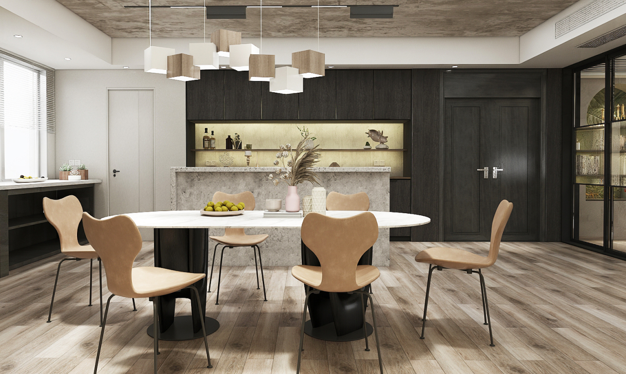 每個空間至少2張效果圖+1張全案全景圖展示,方案描述完整,所有空間需命名。