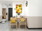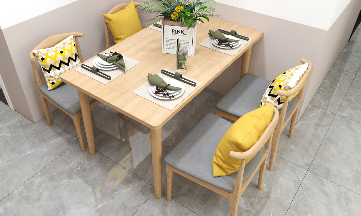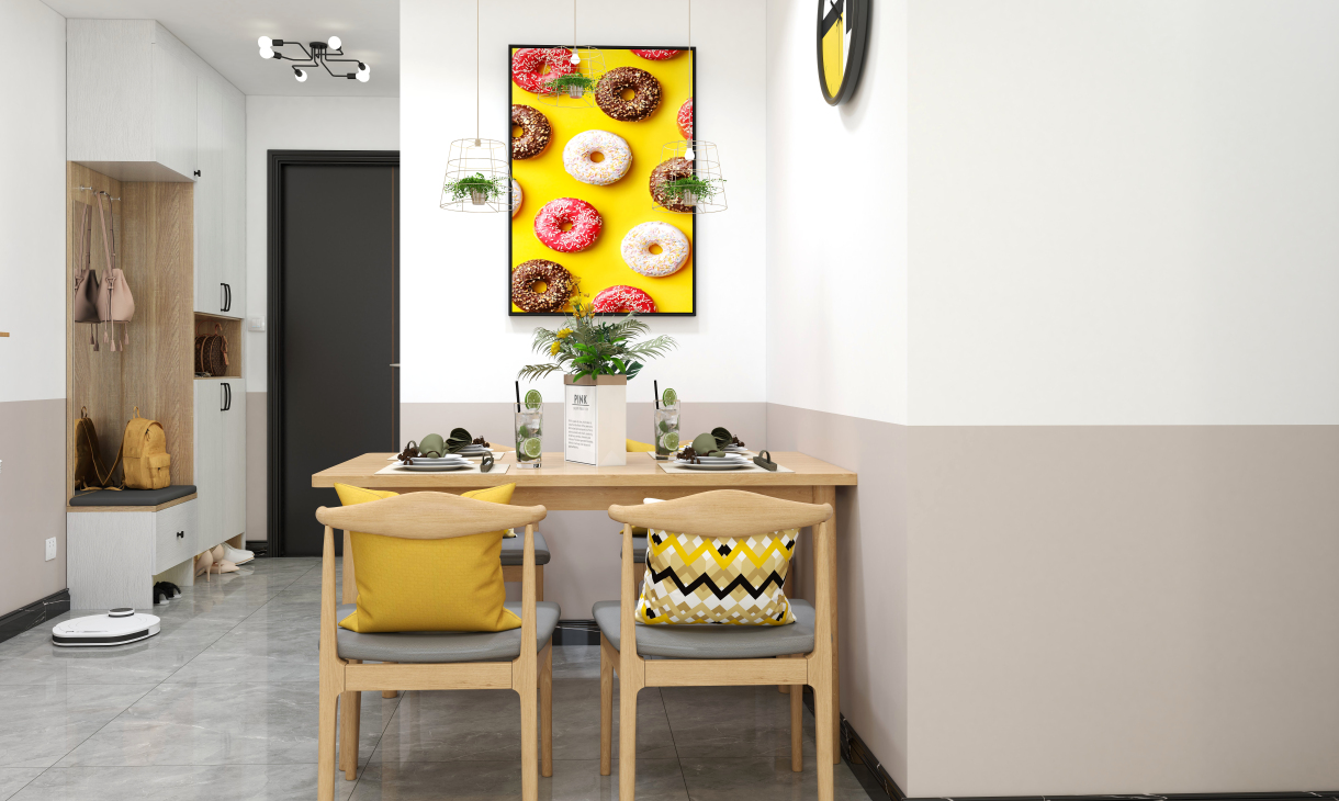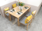 餐桌椅以亮色與暗色對比,木質長桌,一股清新的北歐范,加上原有的環境亮色更顯明朗與溫馨。木色餐桌椅搭配,現代與自然元素結合,溫暖的色調搭配融洽。