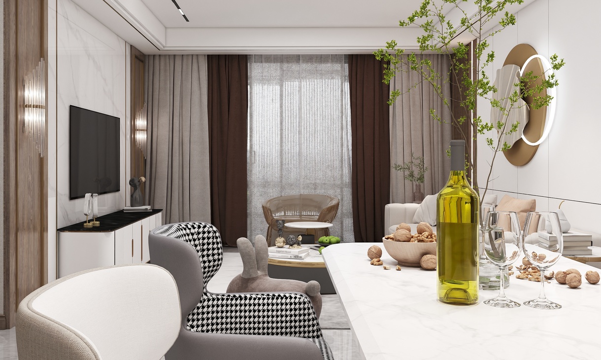 每個(gè)空間至少2張效果圖+1張全案全景圖展示,方案描述完整,所有空間需命名。