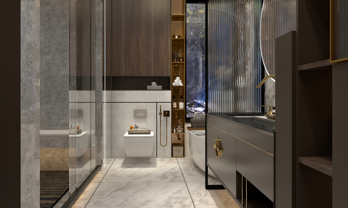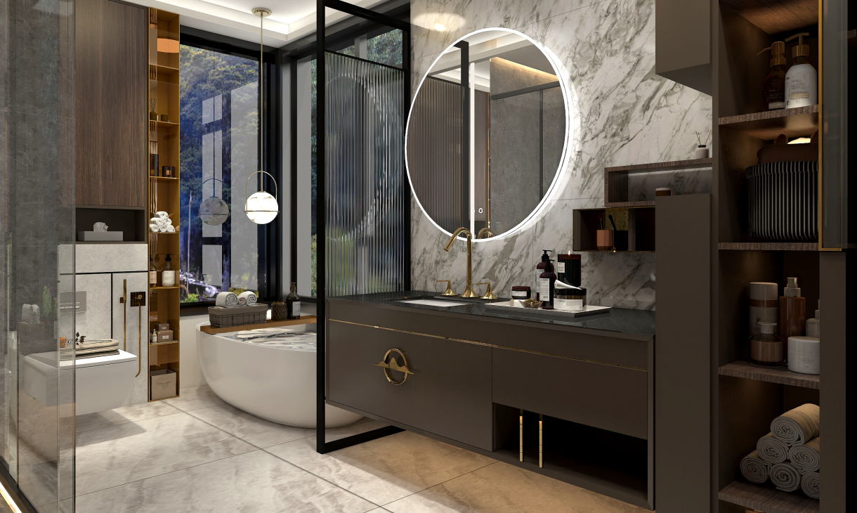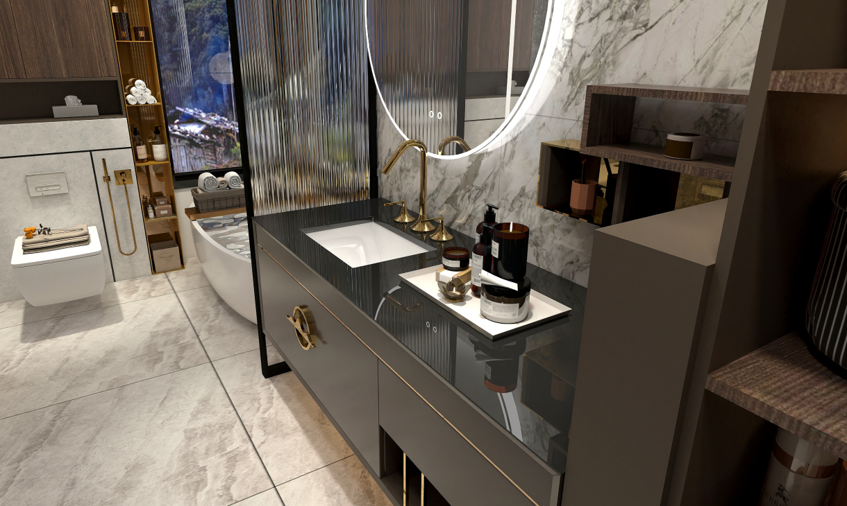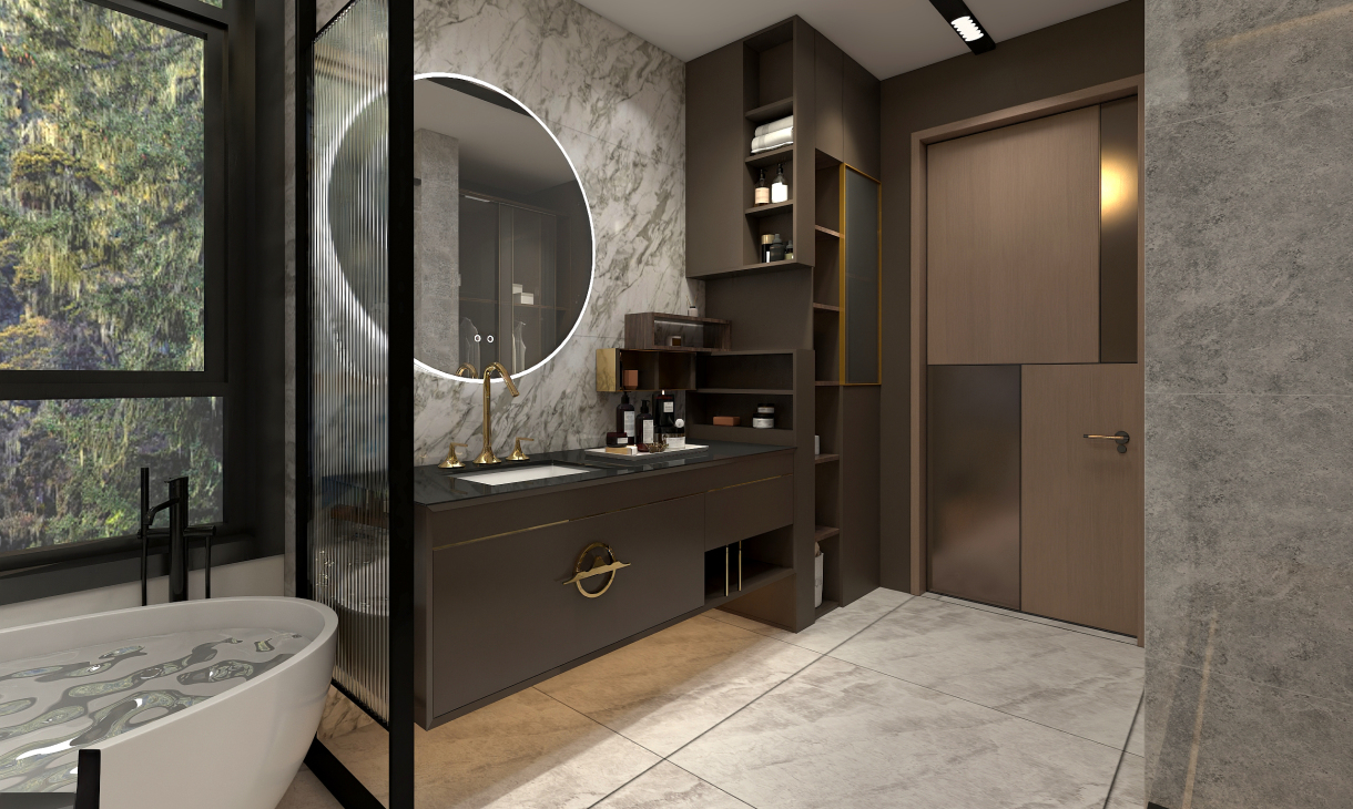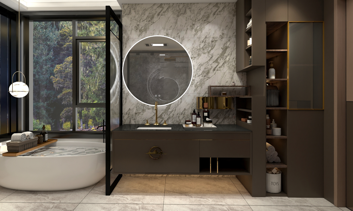 大空間主衛,大型儲物柜子,1.6米的普瑞凡新中式浴室柜,浴缸,淋浴房齊全.