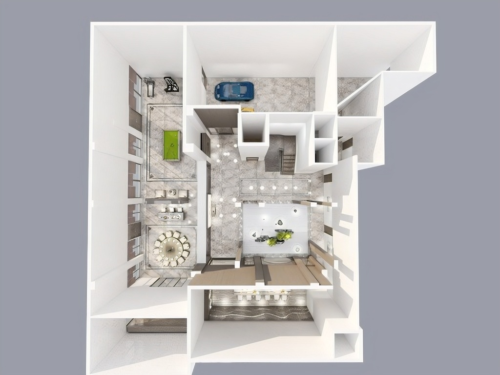 每個空間至少2張效果圖+1張全案全景圖展示,方案描述完整,所有空間需命名。