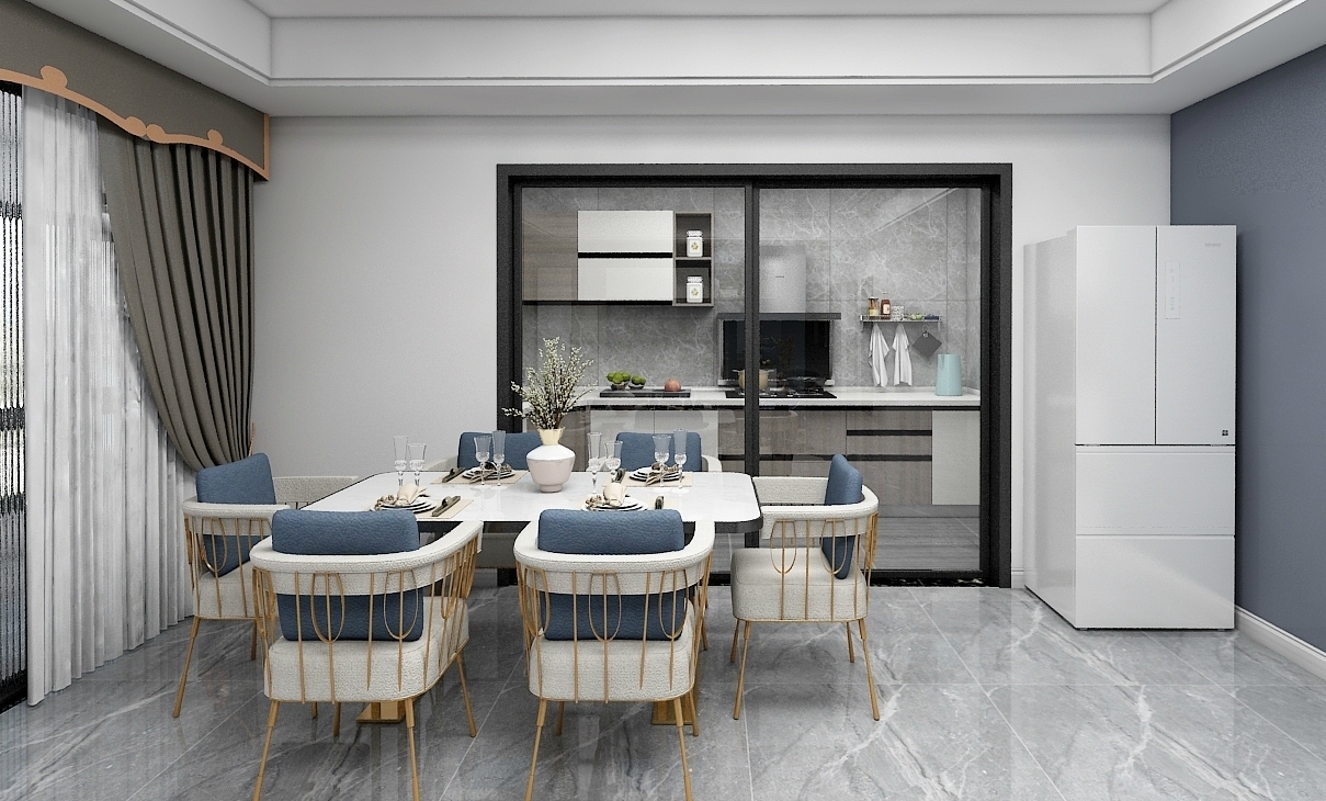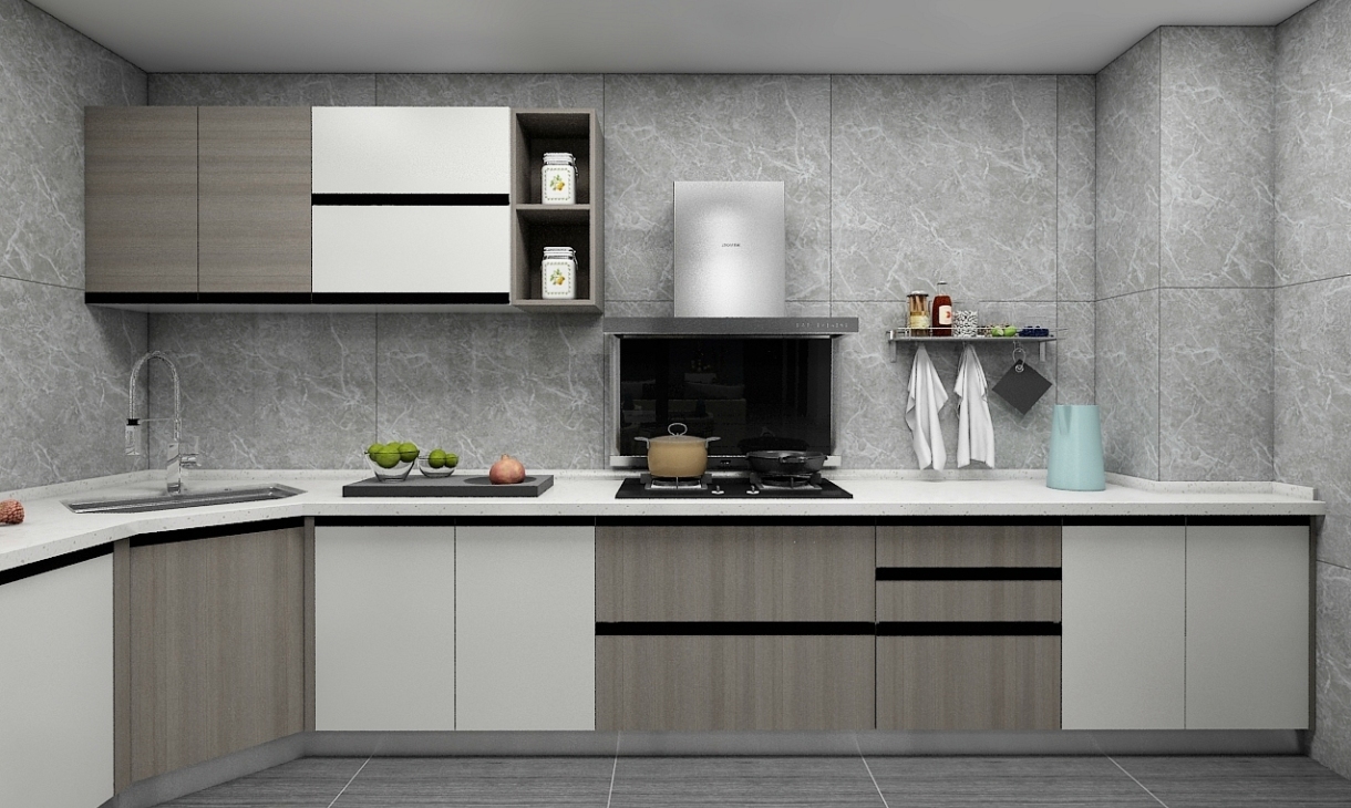 簡潔的線條設(shè)計(jì)構(gòu)建端莊大氣,溫馨舒適。質(zhì)感十足的設(shè)計(jì),時(shí)尚精致的布局,恰如其分地表現(xiàn)出廚 房的明亮實(shí)用。
