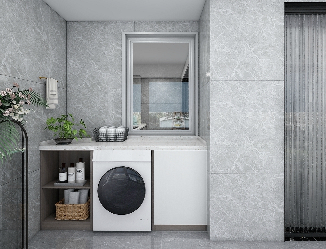 陽臺(tái)柜依據(jù)空間特別設(shè)計(jì),巧妙“偷”來更多收納空間。洗衣清潔,享受凈雅生活。