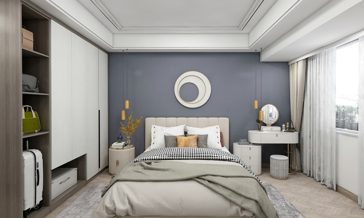 衣柜不僅是給衣物一個(gè)歸處,更是一個(gè)女人品味和審美的充分展現(xiàn)。獨(dú)立封閉式的整墻設(shè)計(jì),帶來實(shí)用強(qiáng)大的收納功能,側(cè)邊展示柜既合理避讓 空調(diào)回風(fēng)口,又美觀實(shí)用。
