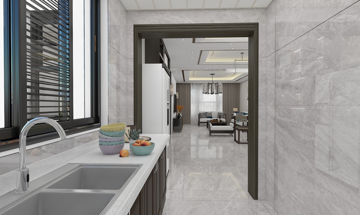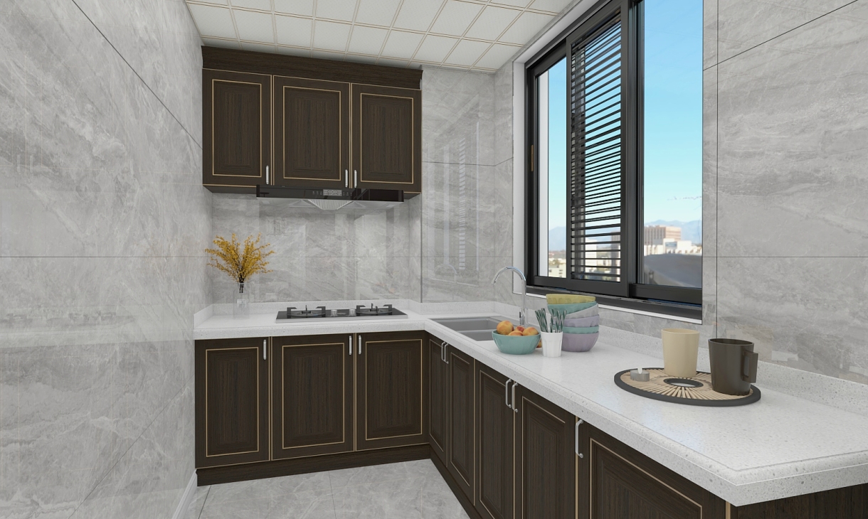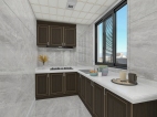 廚房墻面用了地磚翻上來,使整個空間轟然一體,視覺看起來廚房比較大