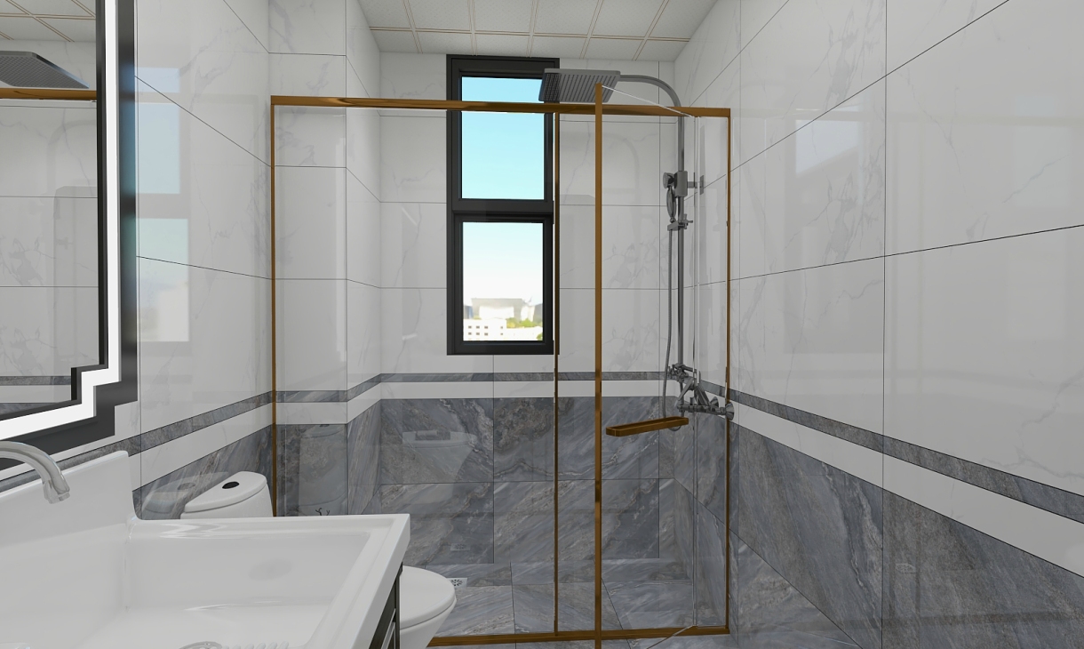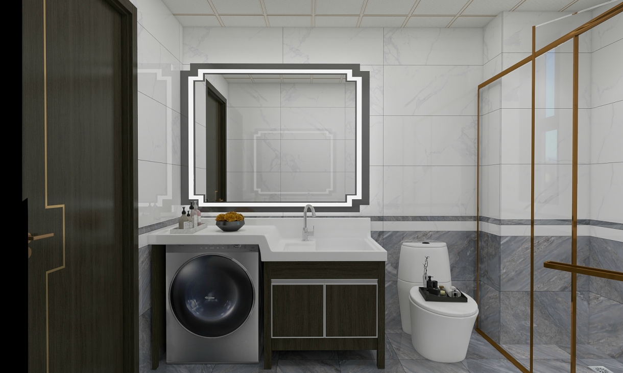 客衛(wèi)采用藍白磁磚,整個空間清新脫俗,洗衣機與洗臉池合為一體,增加空間實用性。