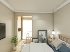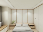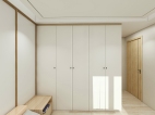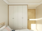 主臥空間和衛生間直接隔開做一個小衣帽間,虛實結合對著衛生間的地方做了開放式的掛衣設計