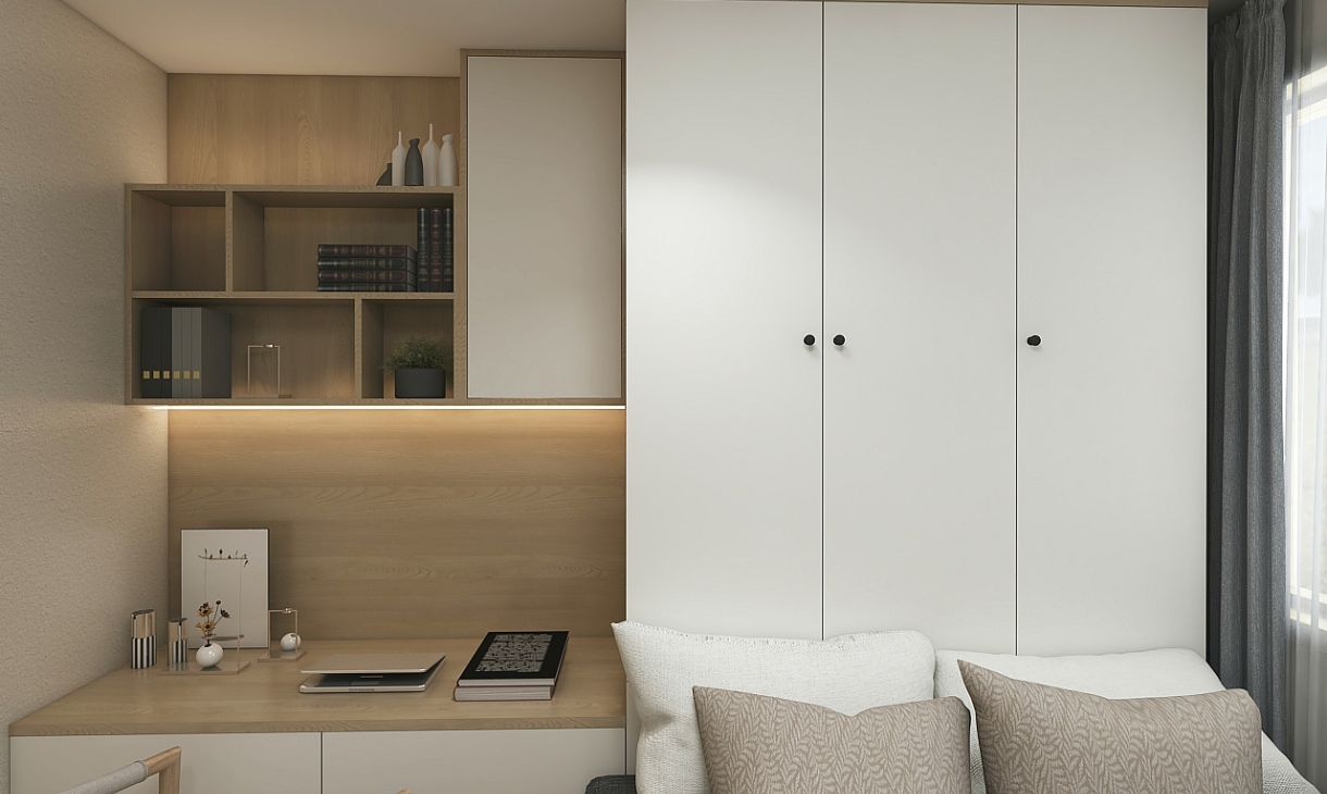 虛實結合,綜合臥室儲物功能和展示辦公相結合